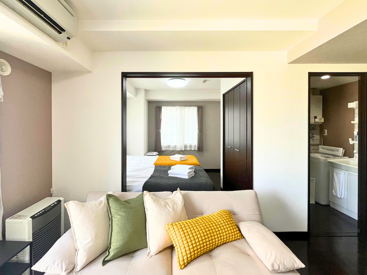 札幌市中心豪華公寓,薄野區充滿活力的區域,提供便利舒適的住宿 二條市場:500公尺 巴士中心前地鐵站:600公尺 薄野地鐵站:800公尺 Tanukikoji購物街: 650公尺 大通公園:1.1公里 這是專為遠距工作的人設計的 工作支援:Apple Studio Display、辦公桌和人體工學椅、印表機和免費 WiFi 臥室:一張雙人床。 起居空間、廚房、浴室和廁所