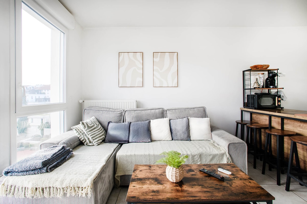 歡迎來到Urban ! 這間公寓面積為38平方公尺的閣樓式公寓,經過全面翻新,位於裏昂Part-Dieu中心安靜的單行道上。 優質設備包括: 160 x 200公分牀、55英寸LG Oled電視、Netflix和Amazon Prime Video、光纖WiFi、可逆空調、配備Nespresso咖啡機的廚房、配備步入式淋浴間的大浴室、吹風機和放大鏡! 祝您住宿愉快!