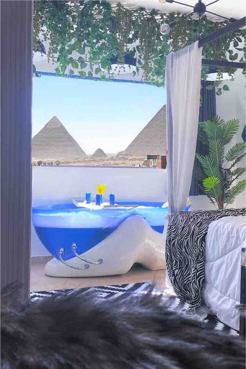 私人屋頂,配有按摩浴缸和金字塔景觀