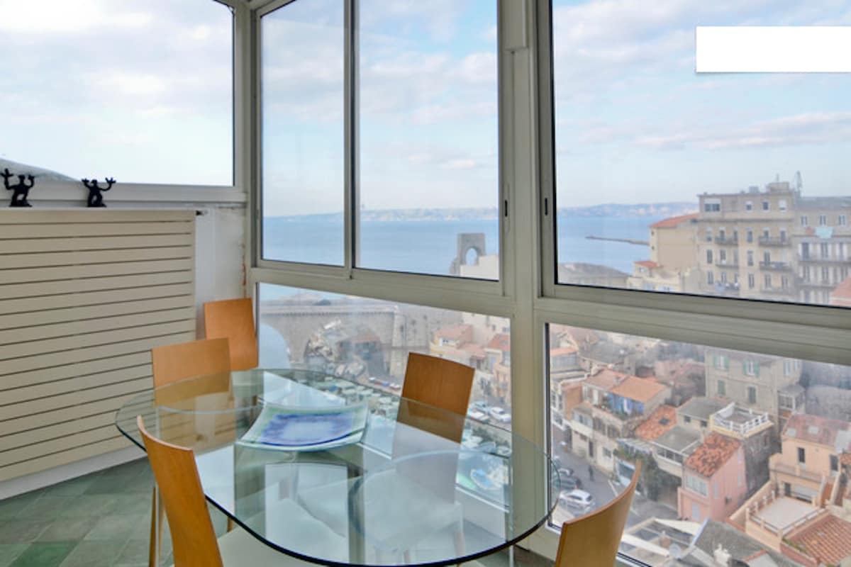 全面翻新的住宿,位於歷史建築的8樓和最後一樓,配有電梯和2個大露臺,俯瞰加泰羅尼亞海灘,可欣賞馬賽的海景、海岸和180度港口景觀。 就像屋頂房子一樣,這個獨特的地方靠近所有歷史景點(步行10分鐘即可抵達舊港口, 5分鐘即可抵達Endoume )和設施(附近的所有商店)。 距離大樓100公尺的停車位包含在租金中。