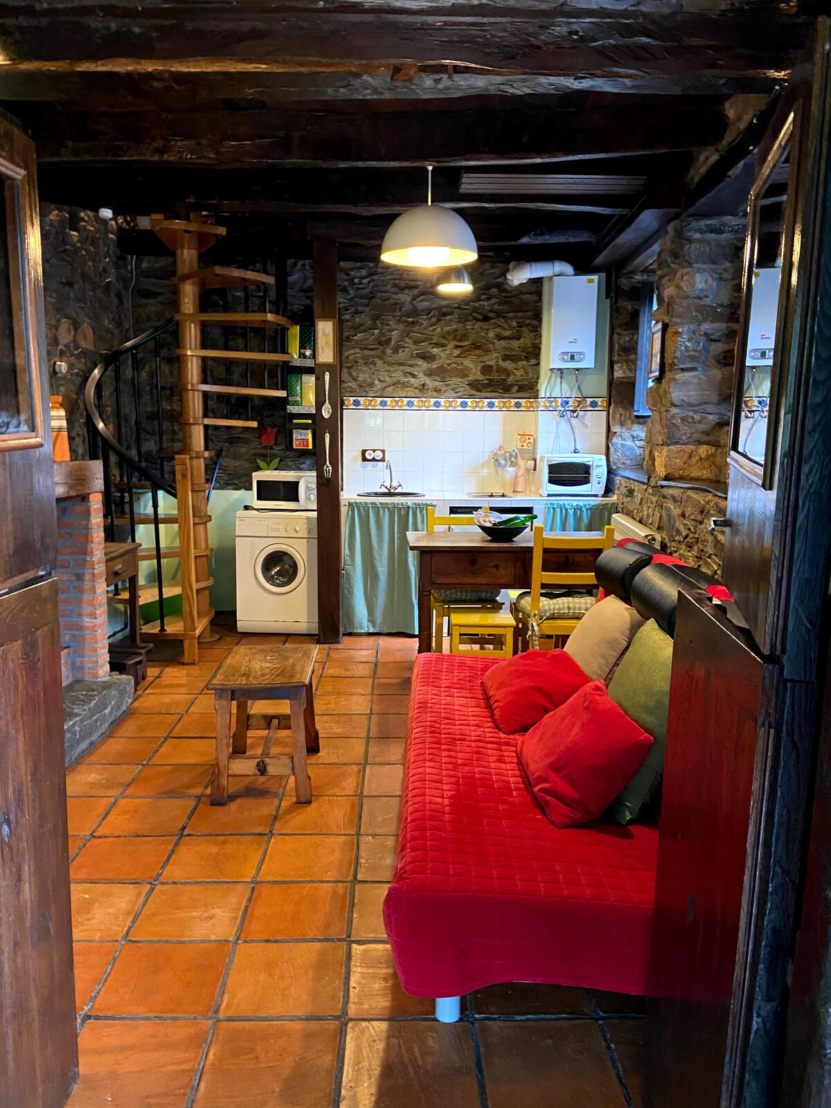 Enjoy the authentic tranquillity of a unique valley off the beaten track of Western Asturias. Casa del río is located away from the noise. Come and enjoy this privileged secluded location surrounded by native forest and walking distance from the lake. El pajar (the barn) de Casa del río is an independent one-bedroom apartment with bathroom, kitchen and living room, built on a first floor. The kitchen is fully equipped to cook your own meals. The whole apartment has views to the valley.