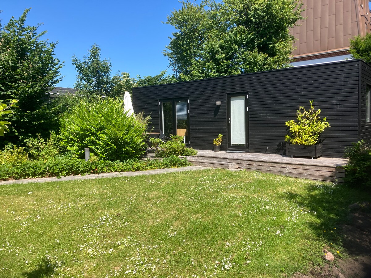 Unik bolig helt for jer selv - og tæt på centrum. Fri parkering. Nyd vores skønne anneks, der ligger ugenert i haven bag vores hus. Tæt på letbane og indkøb. Kun 2 km. fra Aarhus centrum, 500 meter fra Aarhus Universitet. Egen terrasse med havemøbler. Fuldt udstyret køkken. Aircondition. Bo roligt, hyggeligt og centralt hos Ina og Martin.