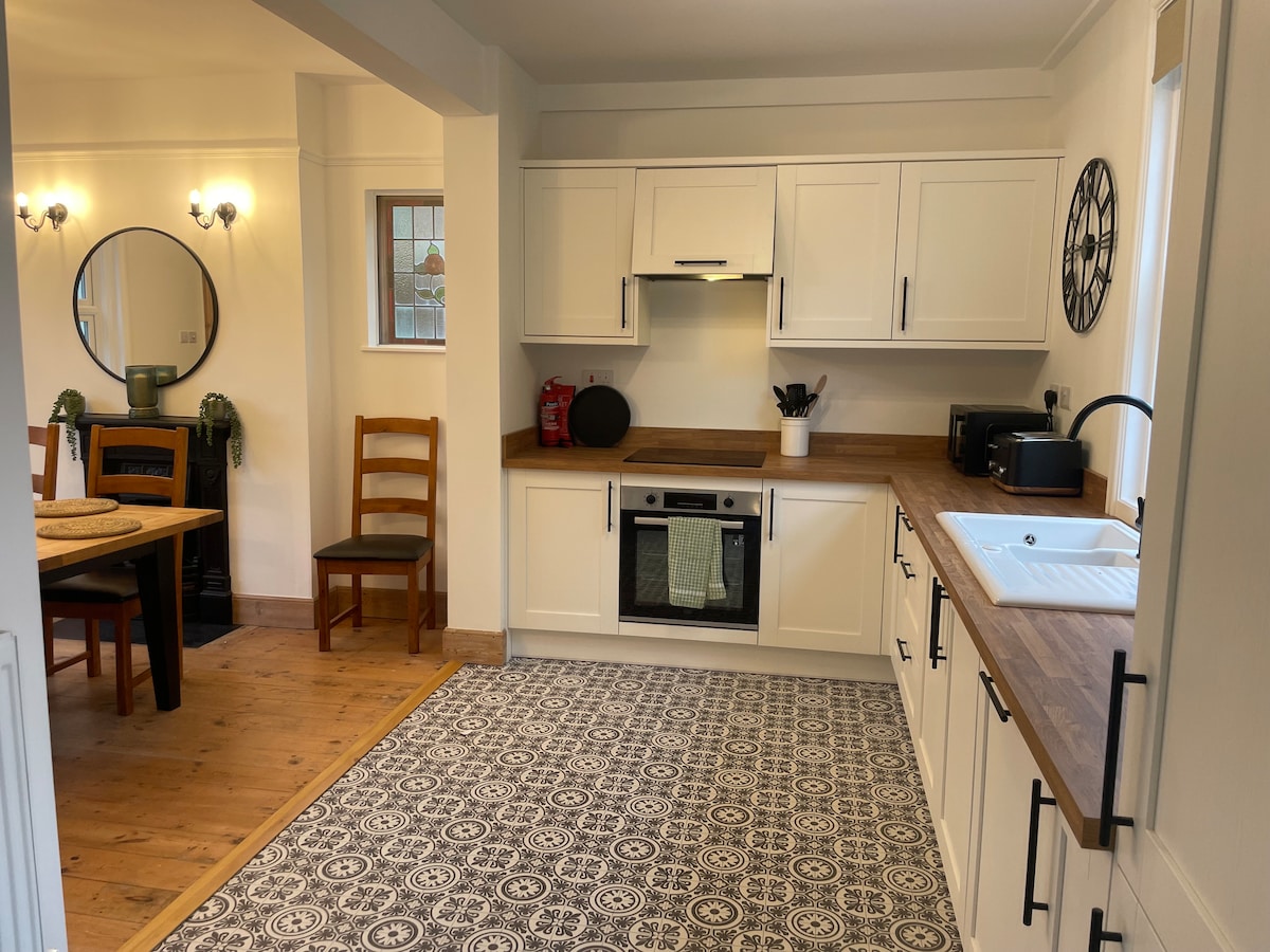 獨立豪華附屬建築,可供一至兩位房客入住。一個平靜舒適的空間,可以放鬆身心。以極高的標準完成,擁有高高的天花板和橡木樑和柱子。 完全隔熱,地板下有暖氣,下方有石板。 廚房設備齊全,配有烤箱和爐台、微波爐、空氣炸鍋、冰箱、洗碗機、洗衣機。 坐落在英格蘭和威爾斯邊境的壯麗、寧靜的位置,景觀令人驚嘆。體驗鄉村生活的完美選擇。