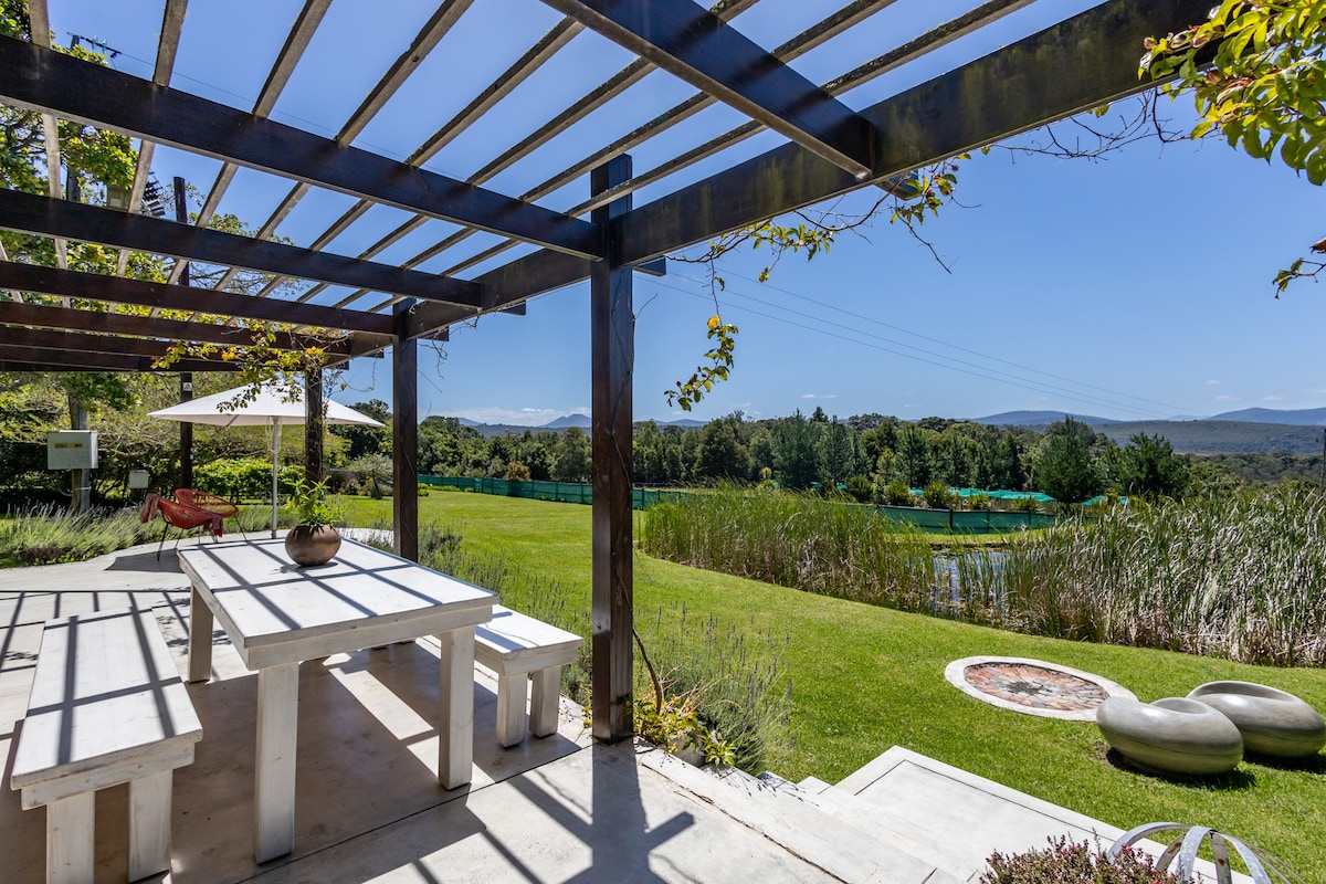 被你的感官覺醒所吸引。聞聞花朵和fynbos的甜美香氣,青蛙的小夜曲,五彩繽紛的鳥類,品嚐我們蔬菜園和果園的水果和蔬菜的香氣。非常適合情侶或帶小孩的情侶入住(不適合3位成人入住)。山、花園、池塘(充滿雨水,季節性。不僅僅是別人家中的一個房間或共用公共區域。您自己的小片寧靜。我們的狗在房源內自由漫遊。