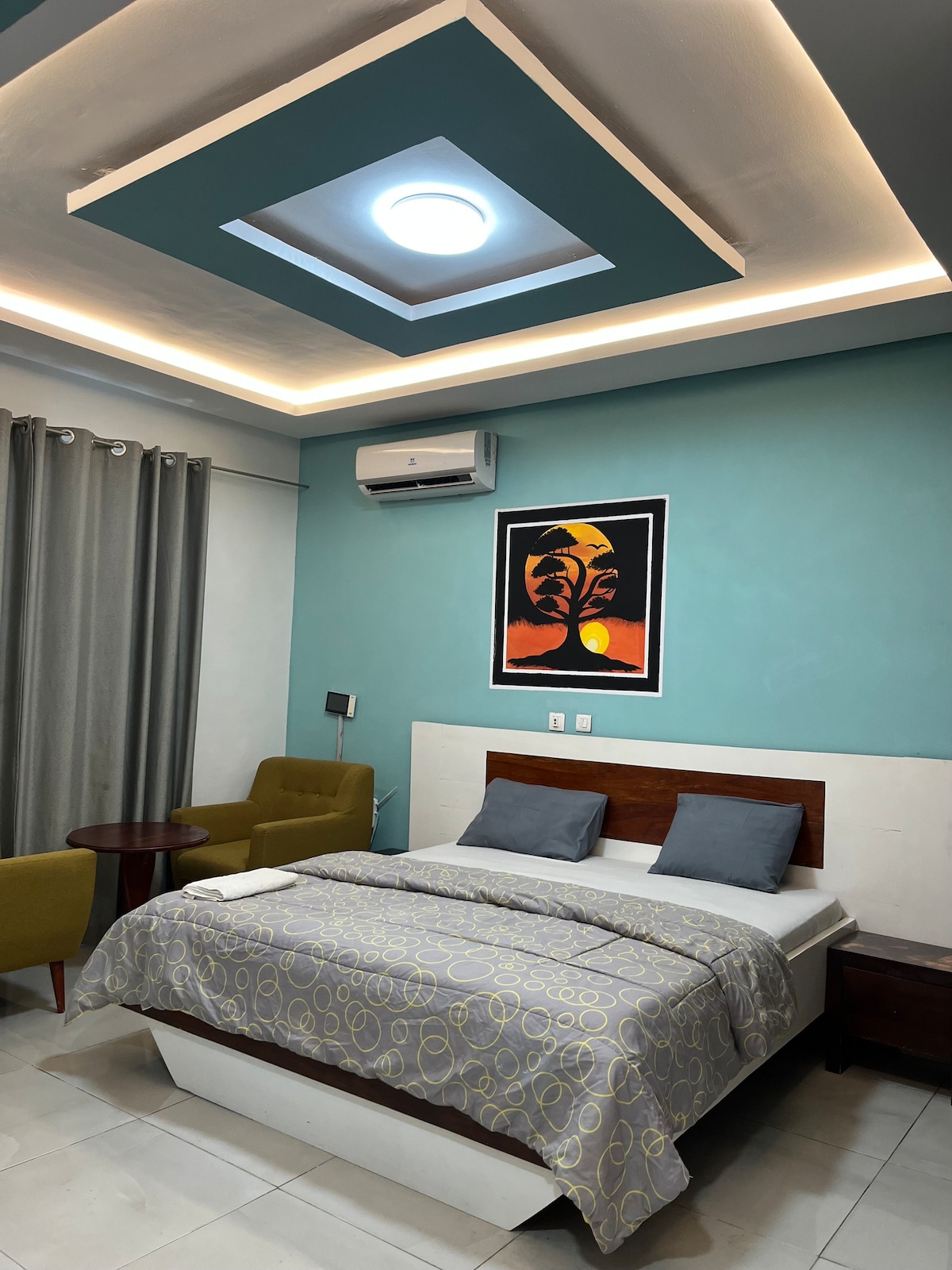 Cet hébergement de charme offre un accès facile aux boutiques et restaurants populaires. Bienvenue dans notre charmant hôtel situé au coeur d'Abidjan, ou chaque chambre est aménagée pour offrir confort et détente, avec un accès facile aux boutiques, restaurants, supermarché et attractions populaires, tout en garantissant un service attentif, une ambiamce chaleureuse et un séjour mémorable pour tous les voyageurs en quête de confort, praticité et expérience unique dans la ville.