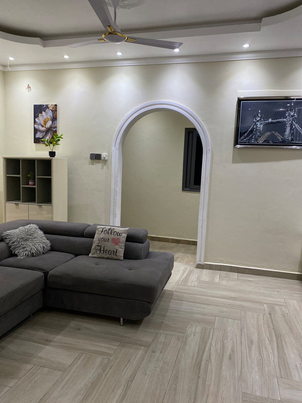 A self-contained 2-bedroom apartment in Tantra Hills about 10mins drive from the Achimota mall. The apartment – inserted in a standalone unit on a larger property – is ideal for anyone seeking an undisturbed and private yet secured space. A spacious home with refined modern design, created for comfort and style, perfect for families and groups of friends. Each space is thoughtfully curated, with colors and design choices that enhance the living experience, making you feel at home right away.