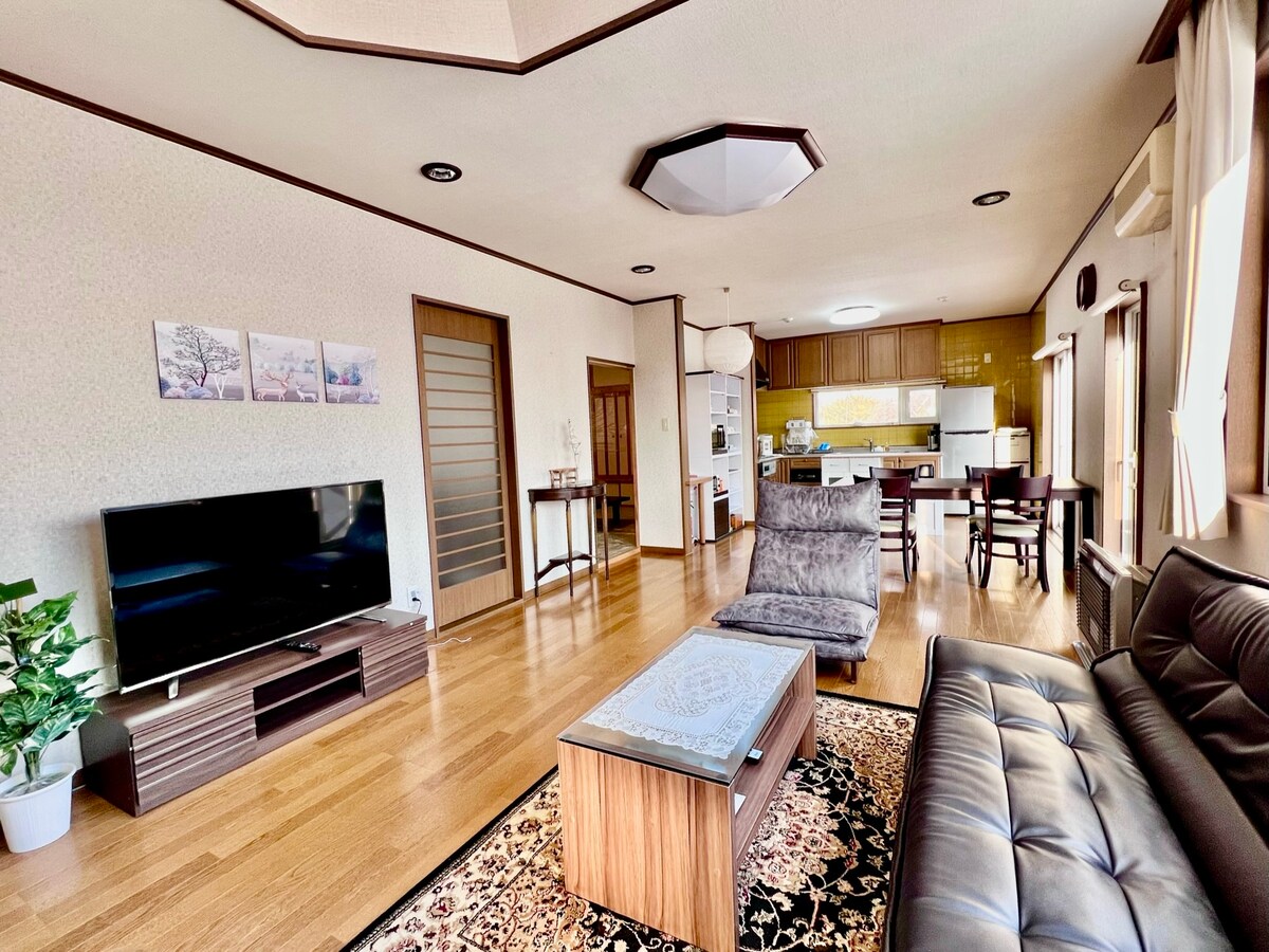 放鬆的客廳, 臥室有2張雙人牀 日式房間內有3套單人日式牀墊。 適合多個家庭或團體,最多可容納7名成人+ 4名兒童( 0至6歲免費)。 由於一對夫婦和一對夫婦也住在一棟房子裡,您可以悠閒地度過。 與孩子(學齡前兒童)一起睡覺是免費的。 距魯蘇度假村( Rusutsu Resort ) 30分鐘,您可以在冬季享受滑雪和單板滑雪 前往新雪谷( Niseko ) 60分鐘很方便!