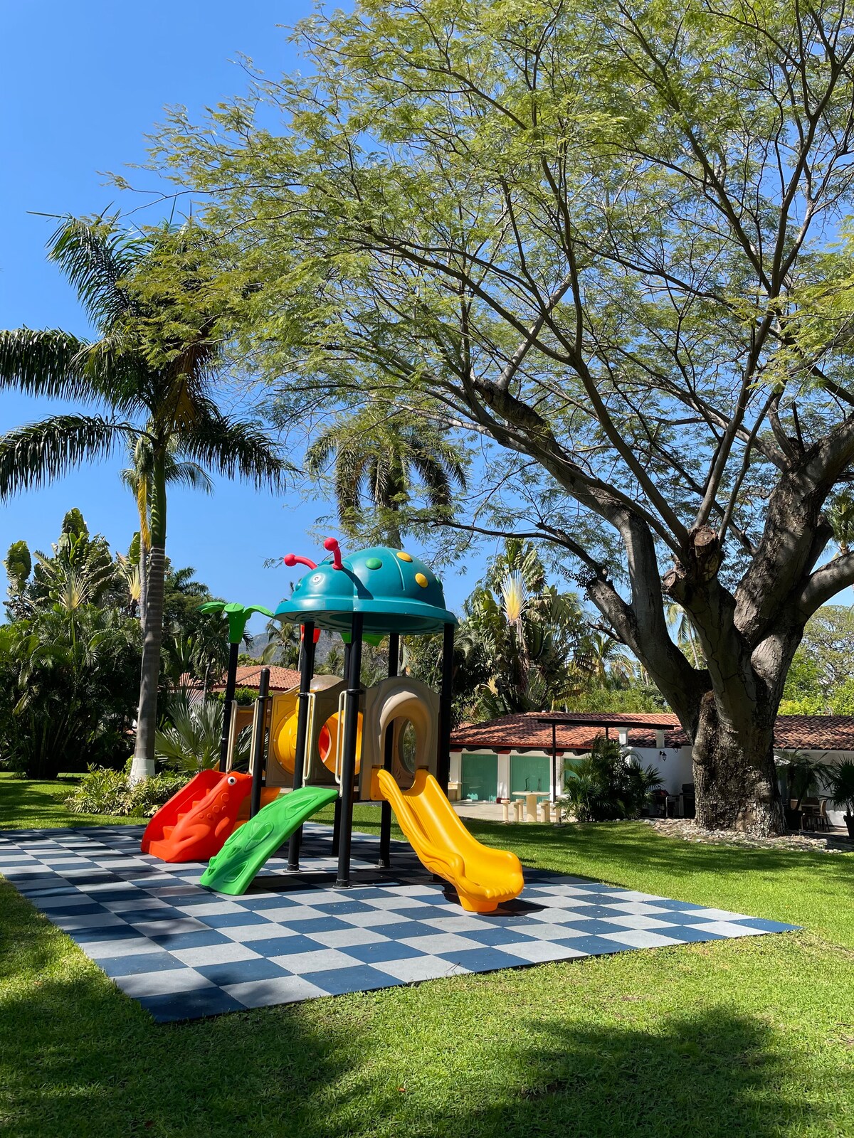 Vuelve a conectarte con tus seres queridos en este alojamiento ideal para familias. Un lugar ideal para mascotas, con amplios jardines para pasear, alberca común con chapoteadero, juegos para niños pequeños, cancha de tenis y de padel. Ideal para correr o andar en bici pues está muy cerca del bulevar palmas. Se puede comprar day pass para el Hotel Princess (sujeto a disponibilidad). Un lugar muy seguro y tranquilo. A 5 minutos a pie de la playa.