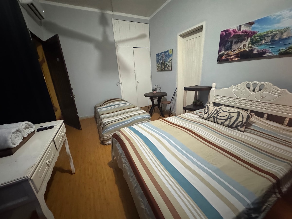 這間小房間距離市中心僅幾步之遙,非常適合 1 人或 2 人入住。 舒適、私密的空間,配備實用的休息必需品,可通往有吊床的走廊。 它有一張雙人床、一間獨立浴室和一個基本區域,配有冰箱、微波爐、咖啡機、水槽和一間小餐廳,讓您享用美食。 如果您是來參觀或工作,這是一個非常好的選擇,有獨立入口和透過密碼鑰匙盒自助入住的選擇。