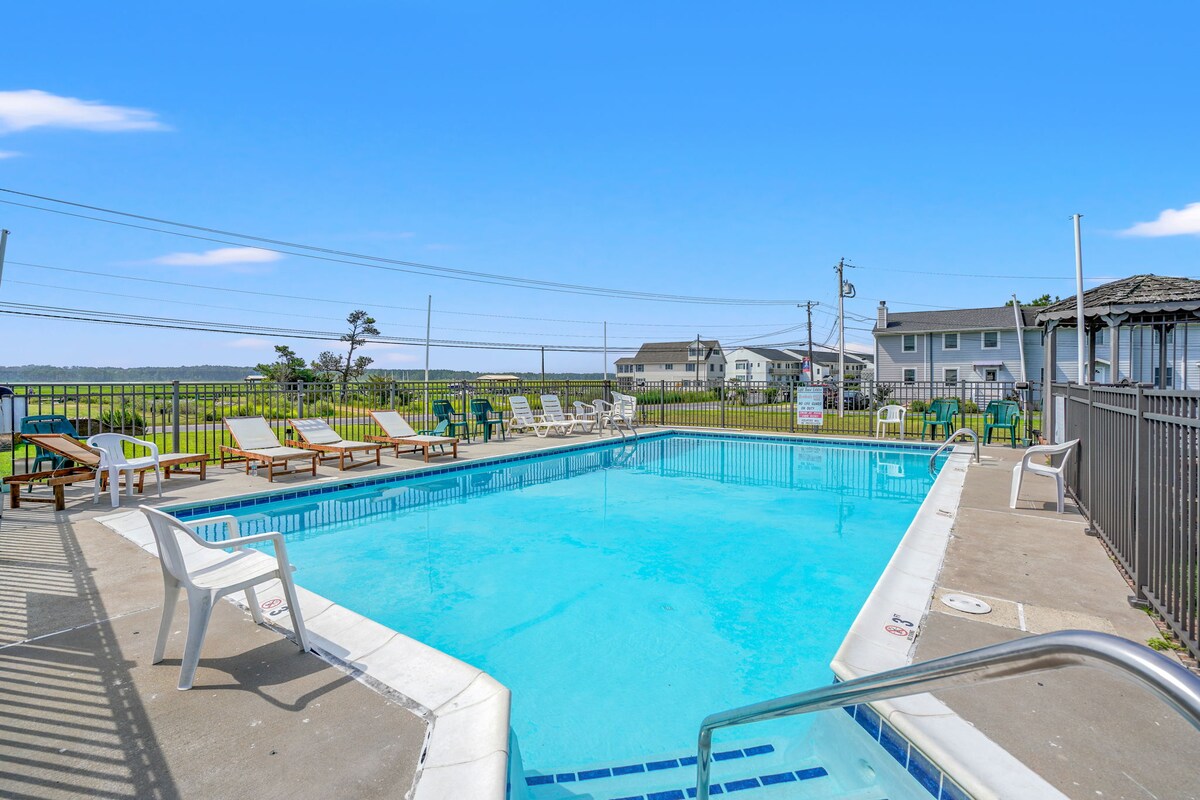 距離Chincoteague國家野生動物保護區和Assateague海灘僅幾英裏。 美麗的沼澤和濕地景色。 共用私人碼頭非常適合捕蟹和觀鳥。 地理位置優越-步行或騎自行車前往商店、餐廳、水上公園等! 在共用私人泳池度過美好的一天。 這間二樓單位有一間配有加大雙人牀的臥室、配有2個爐臺的小廚房、微波爐和全尺寸冰箱。 寬敞的起居室,配有標準雙人牀和書桌。 從起居區域進入全套浴室。