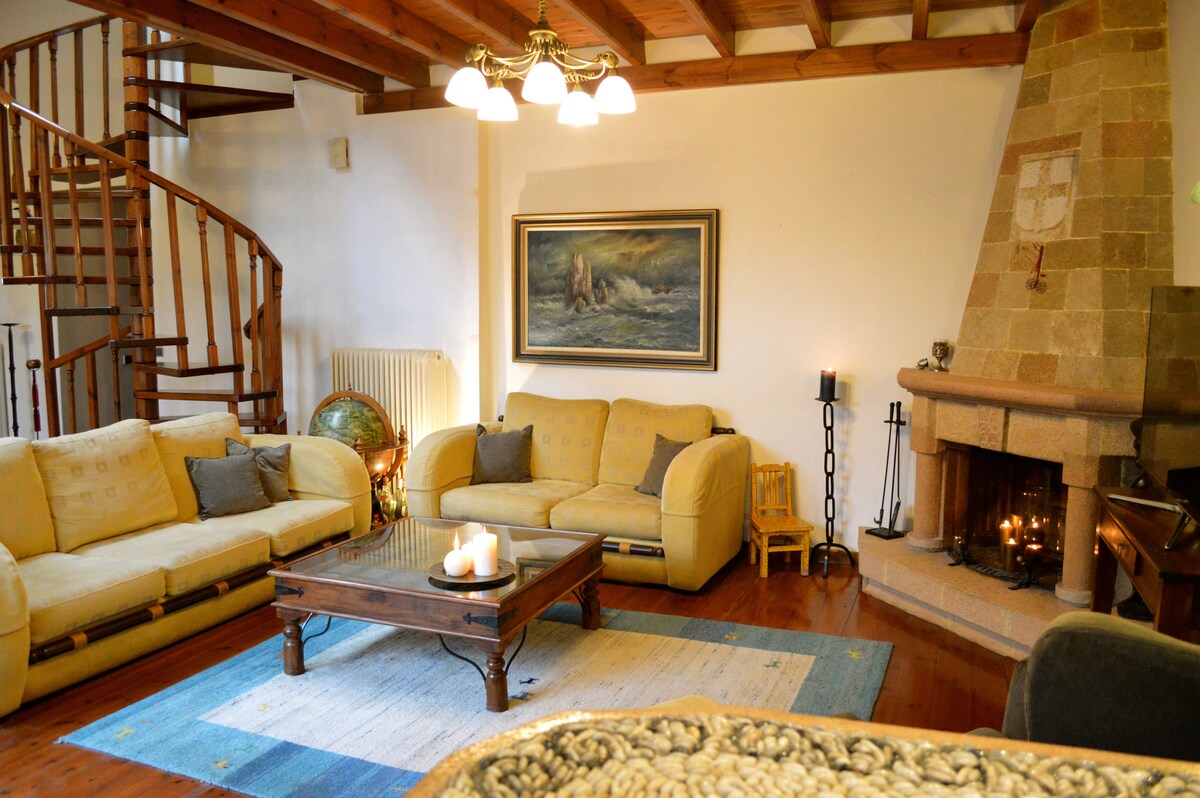Ilios House位於羅德島中世紀舊城區內,位置理想,安靜且陽光充足,距離羅德島中央港口僅幾公尺,距離舊城區市場約100公尺。由於其歷史價值,該房屋於2005年根據羅德島考古部門的規定購買和翻新。由於周圍有拜占庭聖法努里奧斯教堂、帕納吉亞布爾戈寺廟和中世紀護城河,因此以該地區獨特的傳統風格重建了新的現代電器。一樓包括一間帶有老舊馬賽克地板的客廳、帶有冰箱、微波爐、烹飪區和洗衣機、咖啡機、烤麵包機等的舒適廚房和一間令人鼓舞的浴室。一樓是臥室,至少可供四人舒適入睡。房子配備了所有必要的廚房用具、毛巾、床上用品、吹風機、熨斗和板子、電視、DVD、無線網路連線,供您的筆記型電腦使用。非常適合情侶入住,也適合有2位成人和2-3位兒童的家庭入住,以及成人公司或青少年公司入住。 距離大樓僅幾公尺遠,有免費停車位、迷你市場和公共遊樂場,以及許多傳統的希臘小酒館和國際餐廳、咖啡廳和其他娛樂場所、博物館等。此外,您可以每天前往其他多德卡尼斯群島或羅德島的其他海灘。 與隔壁的Ilios公寓一起,最多可容納7人