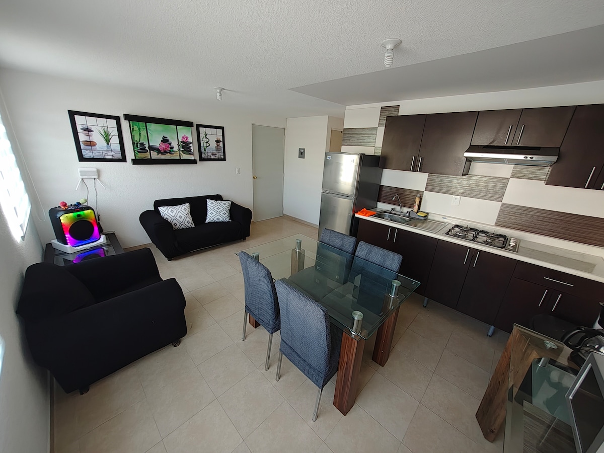 歡迎來到我們位於帕丘卡(Pachuca)中心地區的寬敞公寓,設計現代化。 步行5分鐘即可抵達「Tuzo巴士」站,輕鬆前往整座城市。 開車10分鐘即可抵達Tuzos體育場、歷史中心、畫廊和名人堂。 它可以通往通往神奇村莊的道路。 此外,它在一個街區外的小區有一個公園,可以享受大自然和寧靜。