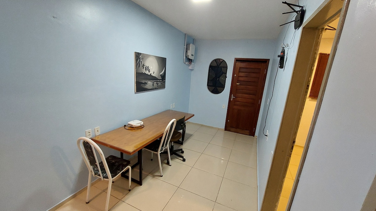 Ideal para tres pessoas, bem localizado, 8km de distância da Beira Mar, Praia de Iracema. Shopping Rio Mar Kennedy, North shopping. Mercado São Sebastião, Centro Fashion Fortaleza, Igreja Redonda... O quarto, é com uma cama de casal, e uma cama de solteiro.