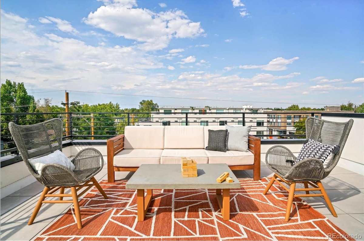位於市中心,可欣賞落基山景。 在私人按摩浴池和後院放鬆身心。 享受新建的房源,享受簡單奢華的家具和寢具。 設備齊全的廚房和大後院。 高達800mbps的高速網路、智慧電視和專屬工作空間。 開車5分鐘即可抵達四條主要高速公路( I-25、I-270、I-76、US-36 )。10分鐘即可抵達RiNo , 15分鐘即可抵達市中心, 20分鐘即可抵達DEN機場。 距離商業城和72大道輕軌火車站兩個街區。