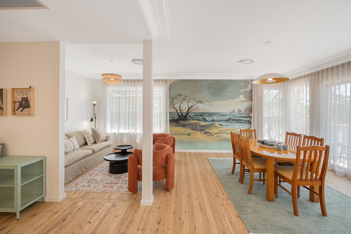 教堂是一座非常私人的140年木製教堂,擁有哥德式窗戶和高高的天花板,坐落在自己的茂密的本土花園中 起居區寬敞,法式門通向樹蔭下的大陽臺 臥室位於夾層,配有標準雙人床 浴室很大,配有長深的鑄鐵浴缸。 內外都適合寵物入住。 步行 5 分鐘即可抵達自然保護區和 Kotara 鐵路站(雪梨線) 開車、搭乘巴士或火車15-25分鐘即可抵達海灘(步行1-5分鐘)