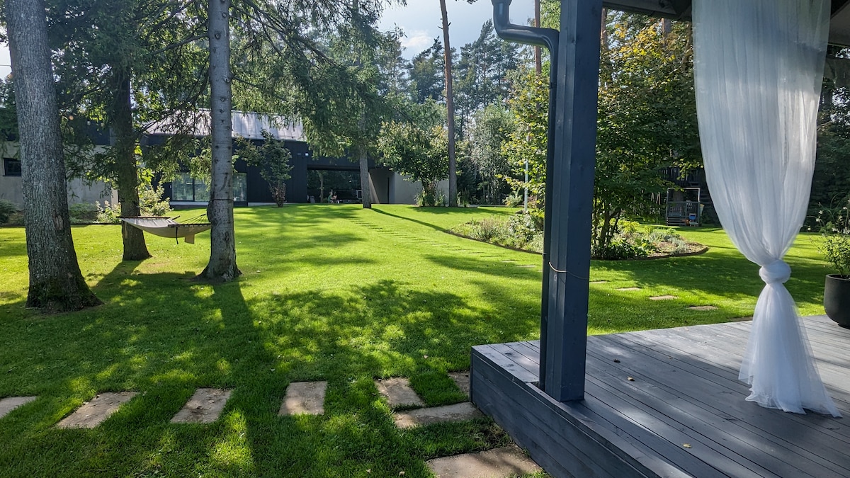 Wonderful cosy and space full house in quite area, for whom can appreciate comfort, silence and privacy. With full equipment. Two stores, 3 bedrooms, 2 bathrooms, terrace. On the territory surrounded by trees, are villa, swimming pool and apart house with sauna. The sea cost just 1 km distance,30 min walking through enigmatic and clean forest. Perfect get away from civilization.