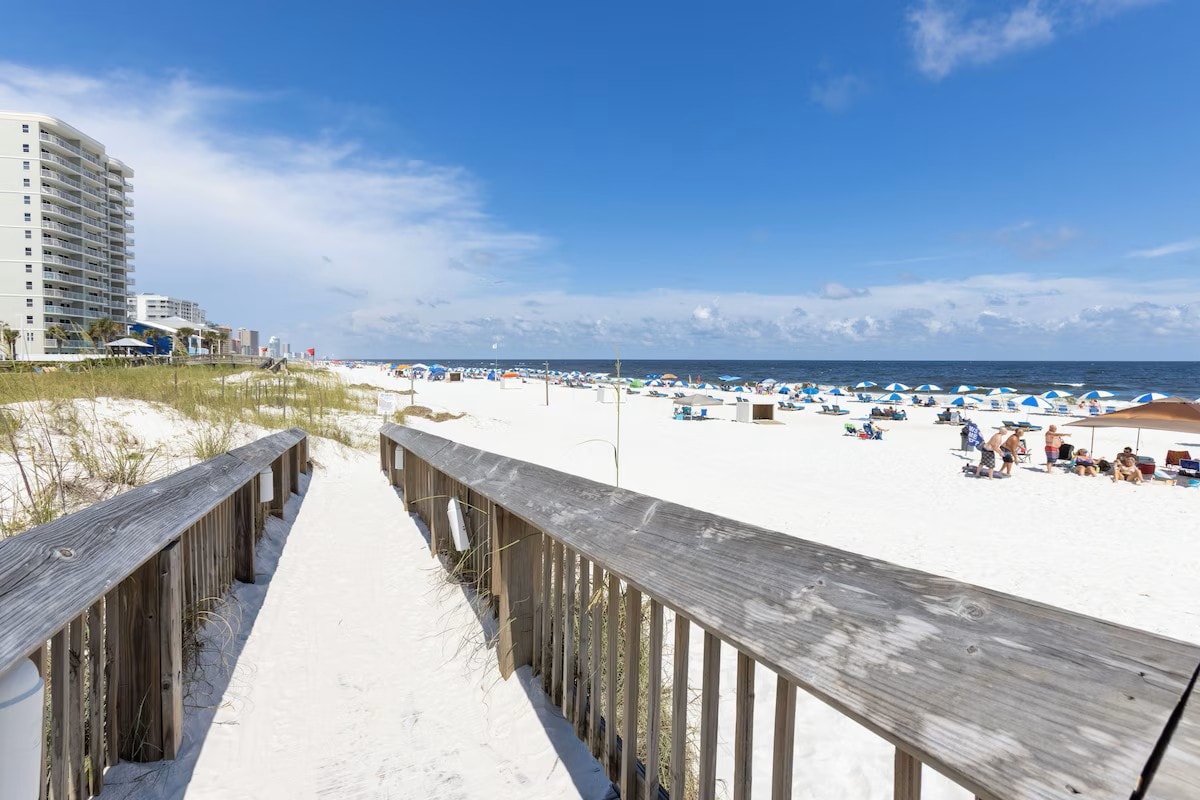 入住這間位處中心地段的海灘前公寓,享受這裡的時尚品味。這個海灣前角單位有一個巨大的陽臺,有足夠的空間供用餐、日光浴、觀賞壯觀的白色沙灘和閃閃發光的大海!配備全新的家具和裝飾,您將以時尚舒適方式迎接著名的海灣海灘。每間臥室都有陽臺。Bluewater靠近許多橘子海灘(Orange Beach)著名的美妙餐廳,距離海灣州立公園(Gulf State Park)僅5分鐘!