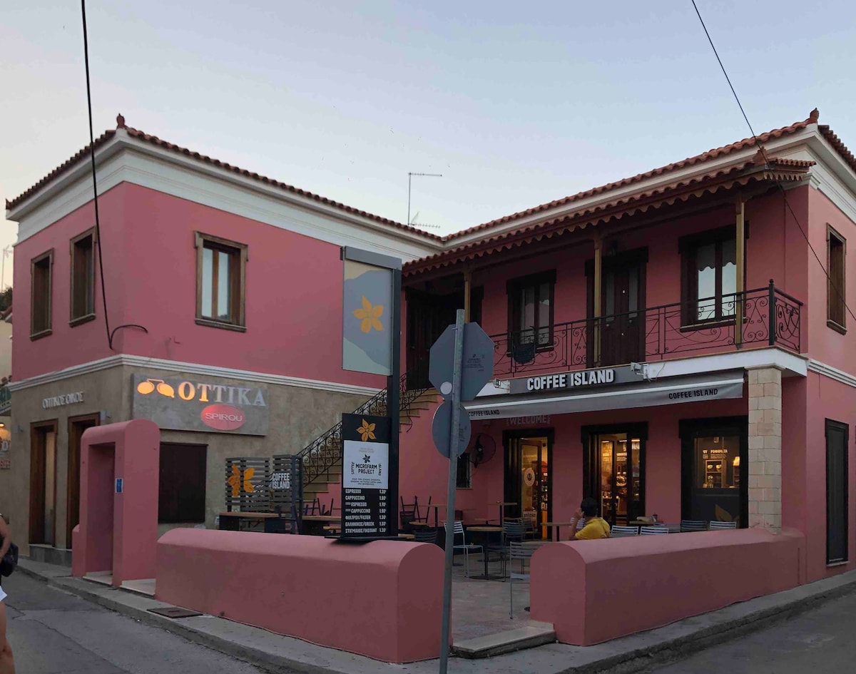 位於埃伊納鎮中心,步行5分鐘即可抵達港口,靠近市場,步行10分鐘即可抵達最近的海灘。這間明亮的單間公寓(30 平方公尺)已全面翻新,位於島上夜生活附近的安全區域。在單間公寓後面,您可以在私人露臺上放鬆身心,享用早餐和晚間飲料。 廚房設備齊全,配有大冰箱、熱盤、烤箱和洗衣機以及許多其他電器。 房源有空調。