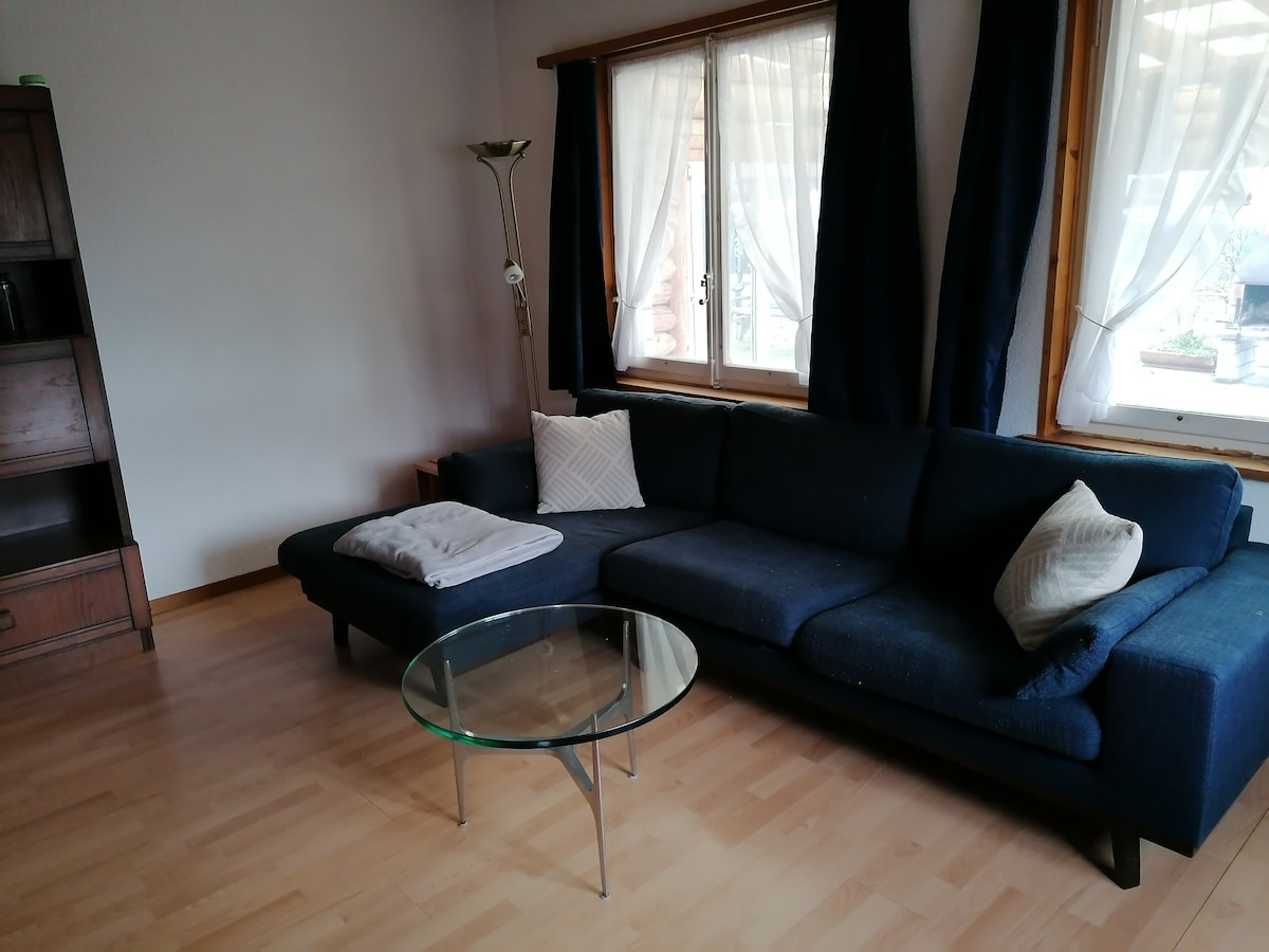 位於花園樓層的舒適單間公寓,讓您享受埃曼塔爾山丘的寧靜與美麗。這套單間公寓非常適合情侶和商務旅客入住,並設有一個大型的有頂露台,可欣賞到美麗的景色。位於安靜的住宅區,距離火車站僅 10 分鐘路程,附近有商店和步行道。偶爾,您甚至可以在附近觀察到奶牛。如有任何問題,請隨時與我聯絡。