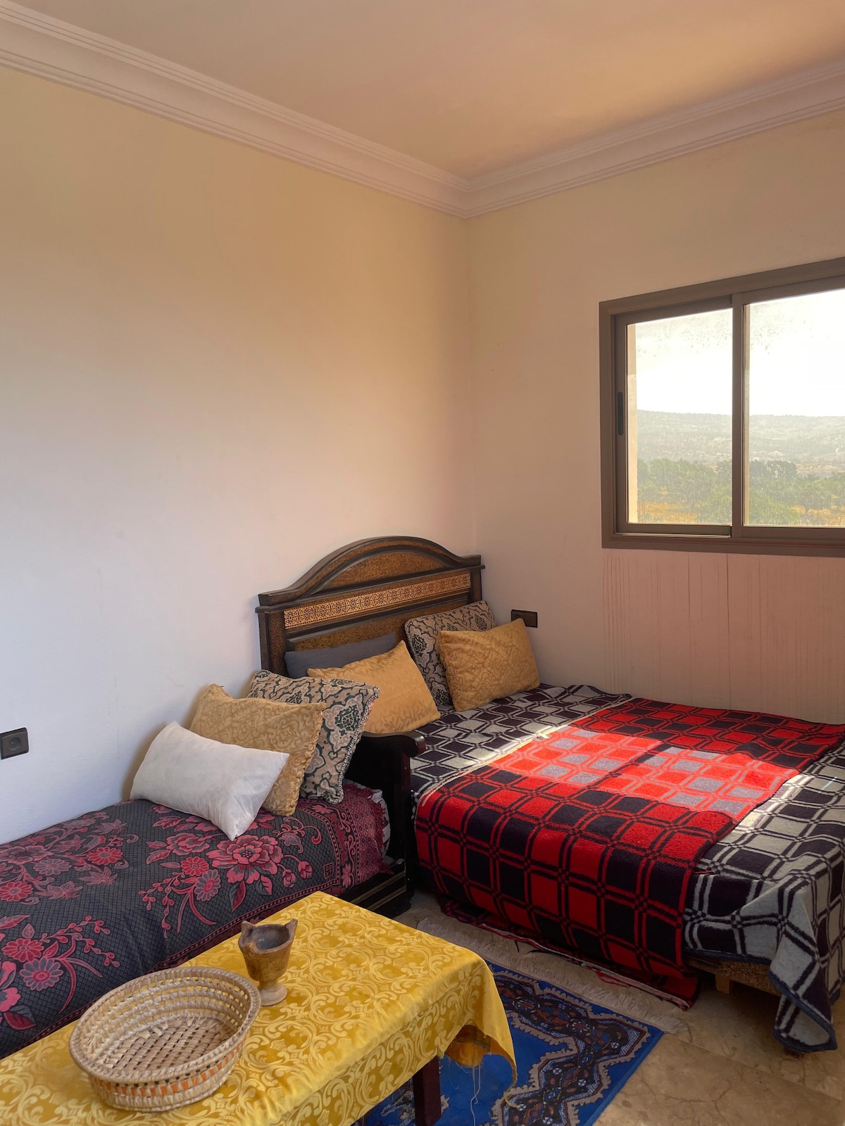 Enjoy a peaceful stay in this fully equipped apartment featuring a panoramic terrace, a shared swimming pool, and stunning mountain views. Perfect for couples, families, or remote work. Ideally located just a short drive from Banana Beach, only a few minutes from Taghazout, and close to Agadir.