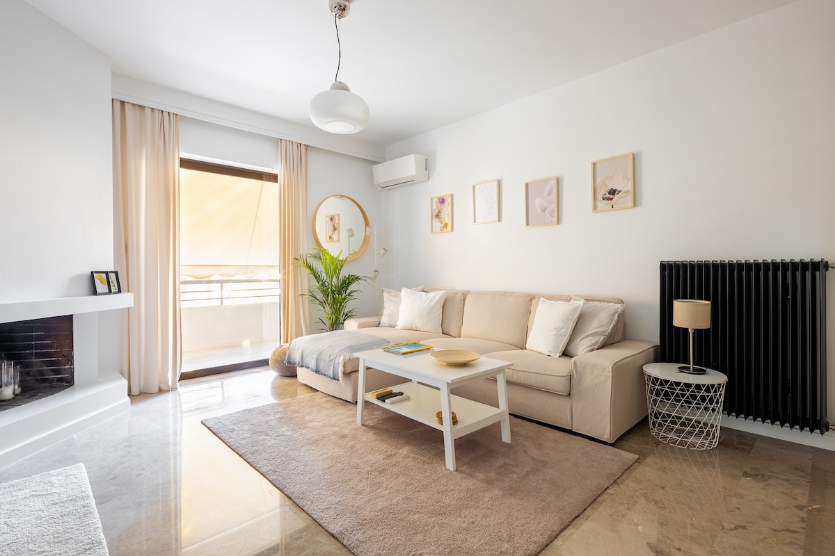 我們新翻修的45平方公尺度假公寓時尚、簡約而舒適,讓您感覺賓至如歸。這間公寓是白色和淺灰色的天堂,一整天都充滿自然光。我們的私人100平方公尺露臺將為您提供度假所需的所有寧靜,讓您欣賞Vouliagmeni 's Bay的壯麗景色。 靠近海灘、滑雪學校、網球場、籃球場、飯店、餐廳、森林、公園,距離雅典中心30分鐘,距離雅典機場30分鐘。