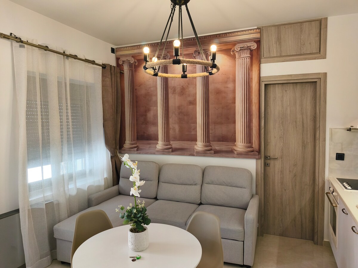 在「Evelina」公寓,我們注重細節、美學和舒適。每間客房都專為寧靜和功能性而設計,為房客提供放鬆和個人空間。 公寓設有開放式客廳、用餐區、廚房、兩間臥室和浴室。它完全無障礙,非常適合情侶或最多五人的家庭入住,對兒童來說也很安全。