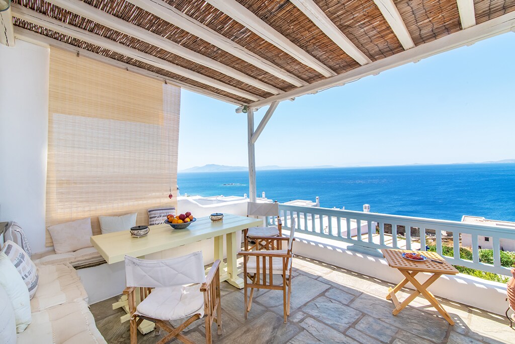 *THE POOL IS PRIVATE* This modern apartment has 2 bedrooms, 2 bathrooms and an outdoor private area with outstanding views of Mykonos, the Mediterranean Sea and Cycladic Islands. The interior was just renovated and everything is new. New apartment located 4 mins (walk) from Ornos Town & Beach and a 5 minute drive from Mykonos Town. 2 mins away (Walk) there is a bus stop taking you to Mykonos Town. Daily Cleaning included. Private swimming pool with panoramic sea views Private Parking