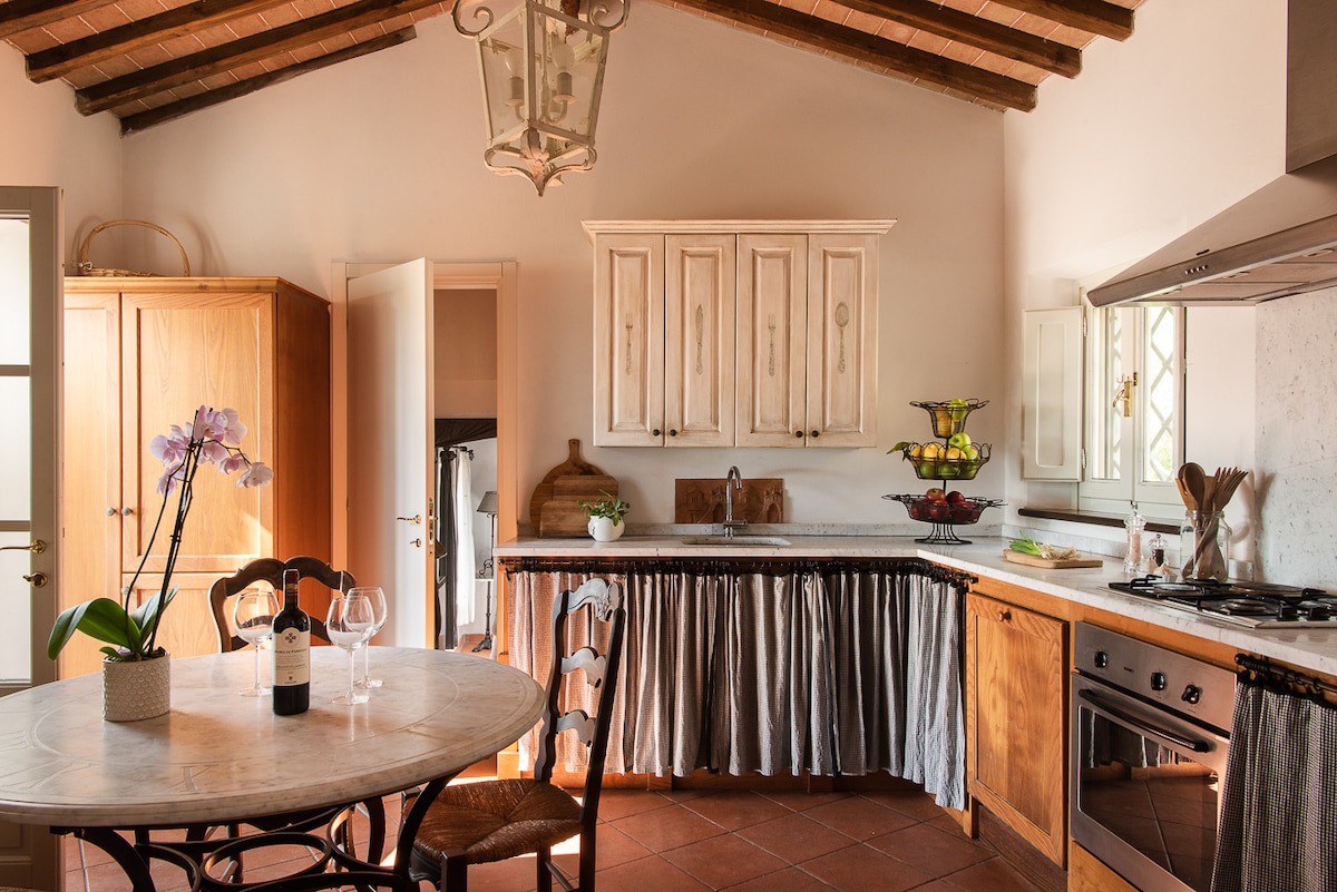 Villa Buriconti 位於托斯卡納農村的綠色植物中,周圍有森林,提供和平和隱私。 從房子可以欣賞山谷和山脈的開放景觀,一邊是阿普安阿爾卑斯山,另一邊是亞平寧山脈。 它保留了真實的魅力,歷史悠久的家具和細節說明了這片土地的傳統。 這裡是尋求寧靜、與大自然接觸和放鬆時刻的理想度假勝地。 在這裡,時間緩緩流逝,沉浸在大自然和寧靜中。