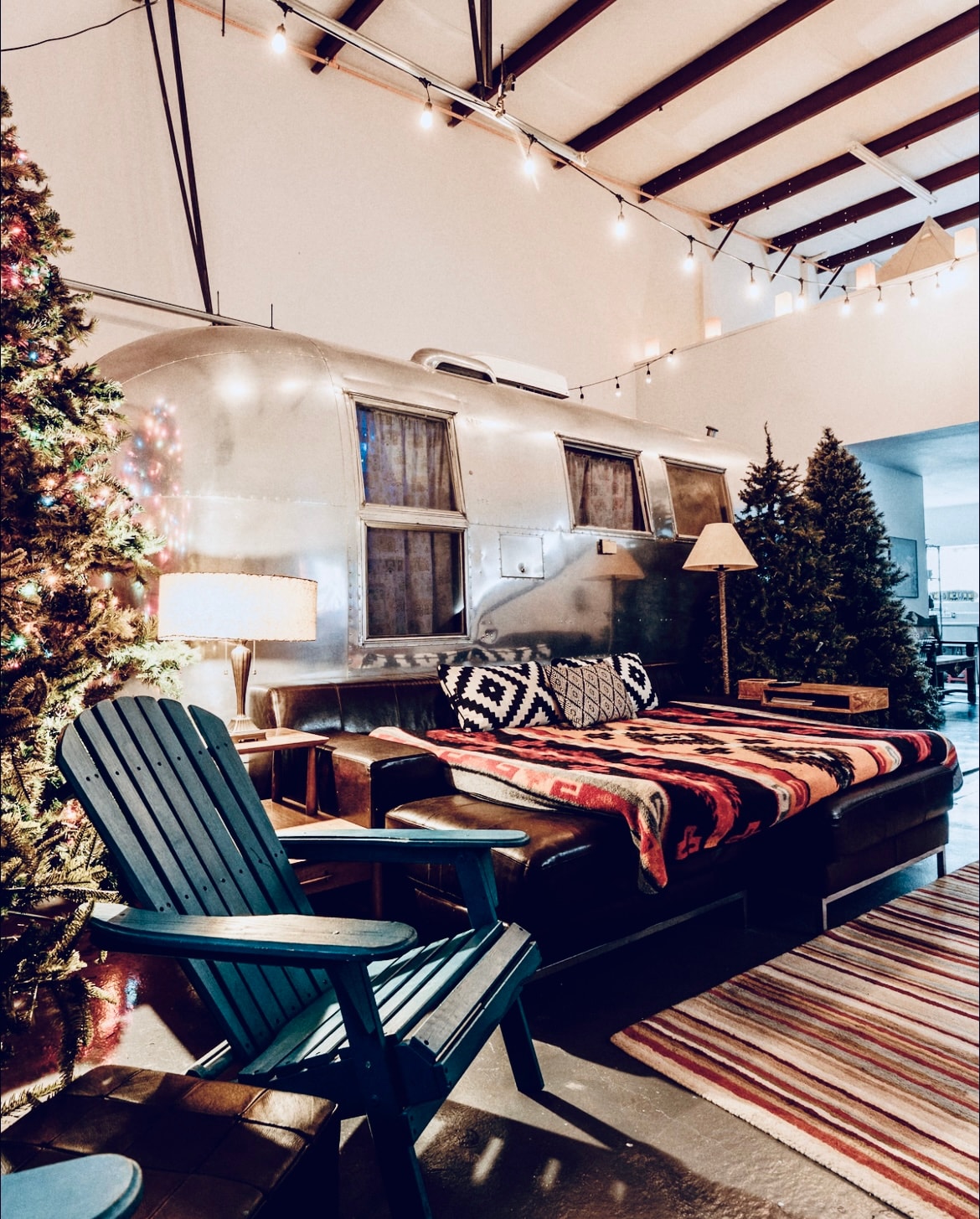 Welcome to “Land of Encampment”, a fun indoor glamping haven just half a block from Meow Wolf's House of Eternal Return! Stay in a beautifully restored Airstream Safari Camper with a cozy double bed + a spacious canvas glamping tent in the loft with a queen-size bed. There’s also a comfy daybed in the living room. Ideal for families with kids, creative travelers, or two couples, this space blends vintage charm with modern comfort and it’s just minutes from Santa Fe’s best art, food, and magic.