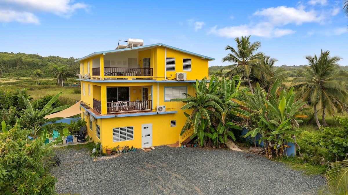 歡迎來到 El Sonido del Rio,這是位於 Rincón 和 Aguada 之間河流上的 5,000 平方英尺私人綠洲。這個熱帶度假勝地有4間寬敞的臥室、40英尺的泳池、茂盛的果樹,附近沒有鄰居,非常適合家庭和最多14人的團體入住。您可以在河邊放鬆身心,在星空下烤肉,或在涼風習習的涼亭打撞球。距離海灘和當地城鎮僅10–15分鐘路程。