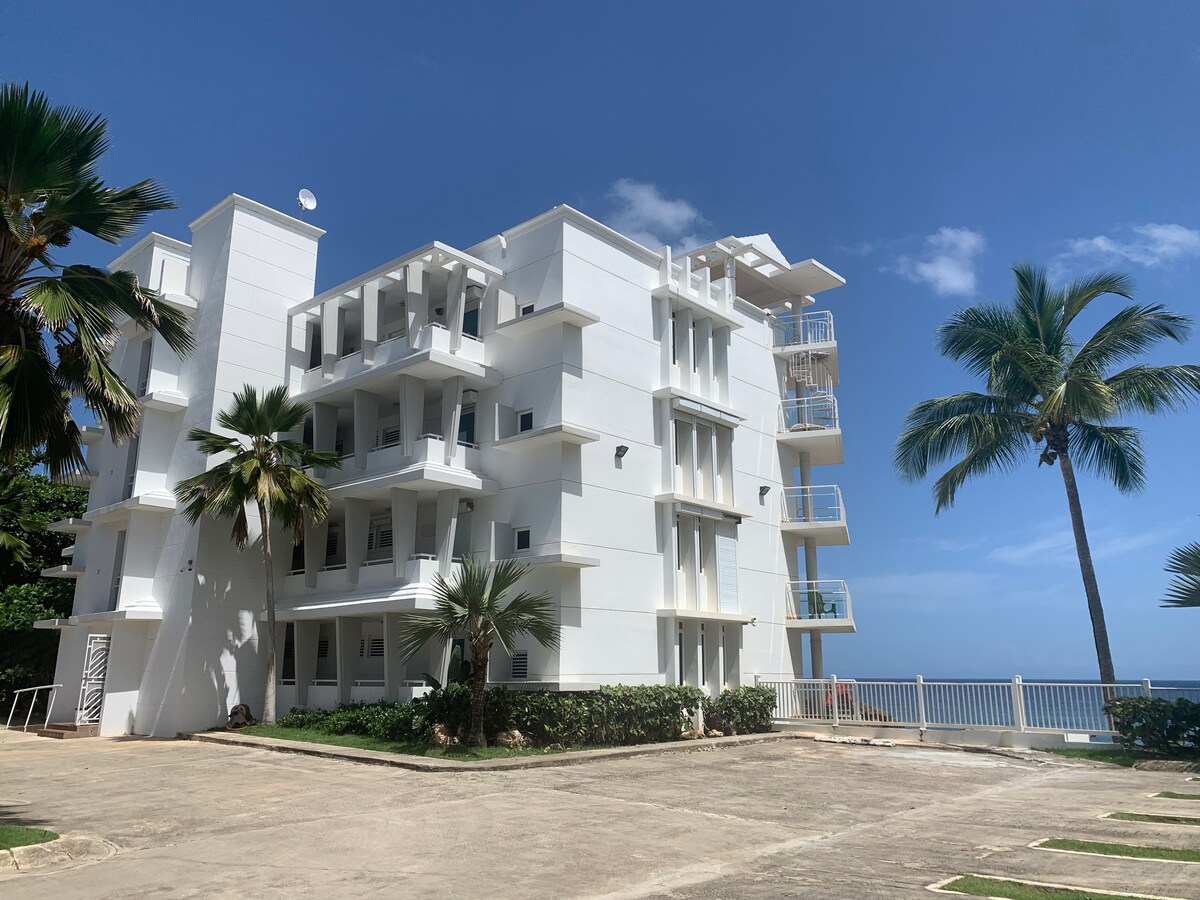 * Beachfront luxury apartment *Pelican Reef in Corcega beach. The best Ocean views from your own balcony! Fully equipped kitchen. 75” T.V in the living room and 65” in the master bedroom, all with premium cable TV channels and Blue-Ray Players. Wi-Fi in all the apartment. Two Queen size beds and one Twin size air mattress. swimming pool, gazebos with BBQ Water tank, electric generator, 2 elevators and access control. The apt. have air conditioning, beach chairs- towels, umbrella and cooler