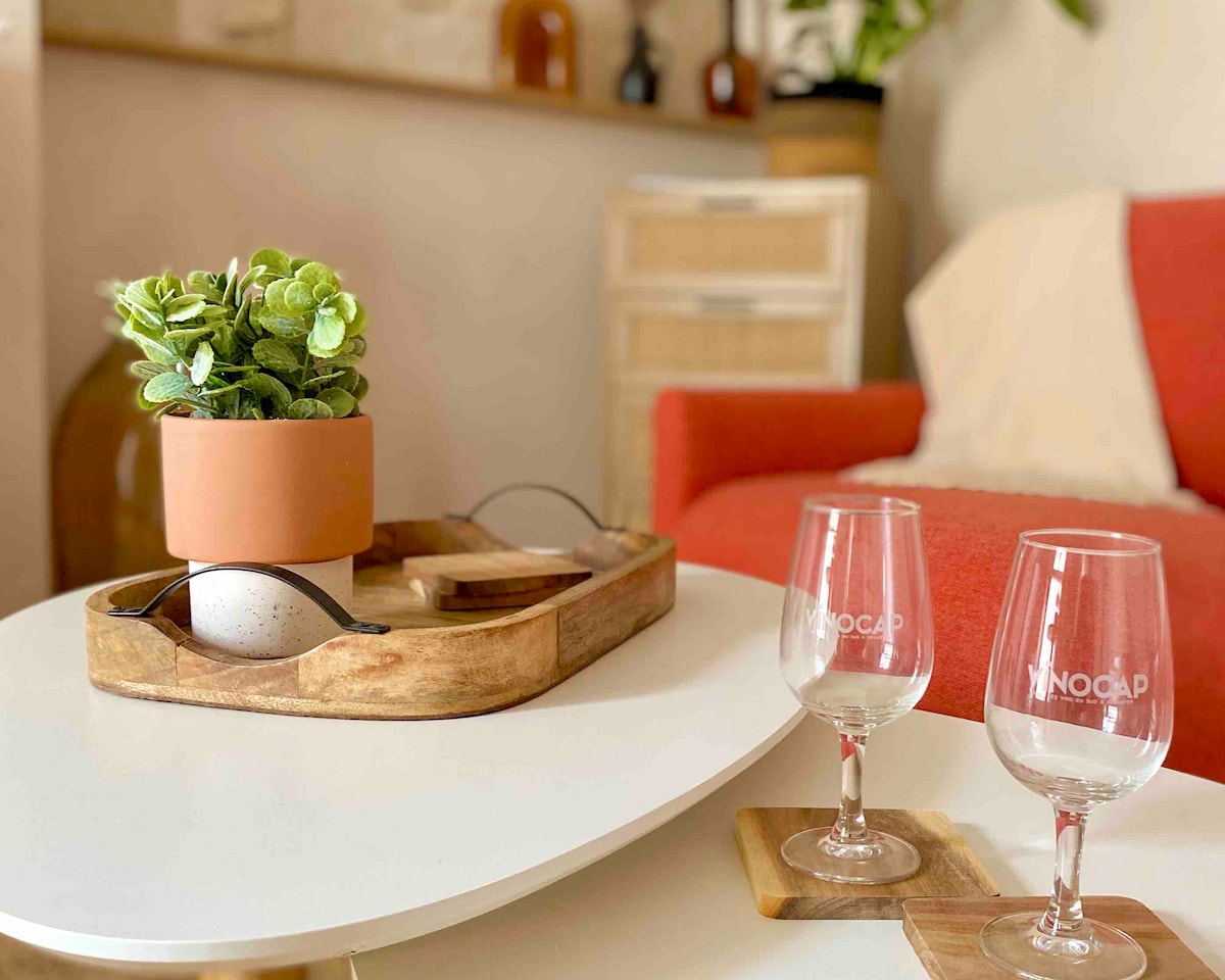位於市中心,裝潢精美的公寓,最多可容納 4 人。 安靜、舒適、設備齊全、Wi-Fi 和空調。 美麗的露臺,可俯瞰花園和瓦斯烤肉。 靠近商店,步行一分鐘即可抵達城牆和市場,開車 10 分鐘即可抵達海邊。 公寓 200 公尺外有免費停車位,設有監視器。 步行 3 分鐘即可抵達旅遊局,步行 10 分鐘即可抵達 SNCF 車站。