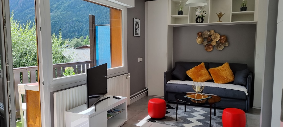 歡迎來到edelweiss ,全新裝修的coquettish單間公寓,坐落在夏蒙尼市中心,距離Aiguille du Midi纜車和購物街100公尺。 您也可以使用免費的室內停車位。 安靜,可欣賞勃朗峯山脈的美麗景色,所有舒適的住宿體驗。 為了保護房客的福祉,我最近更換了沙發牀。