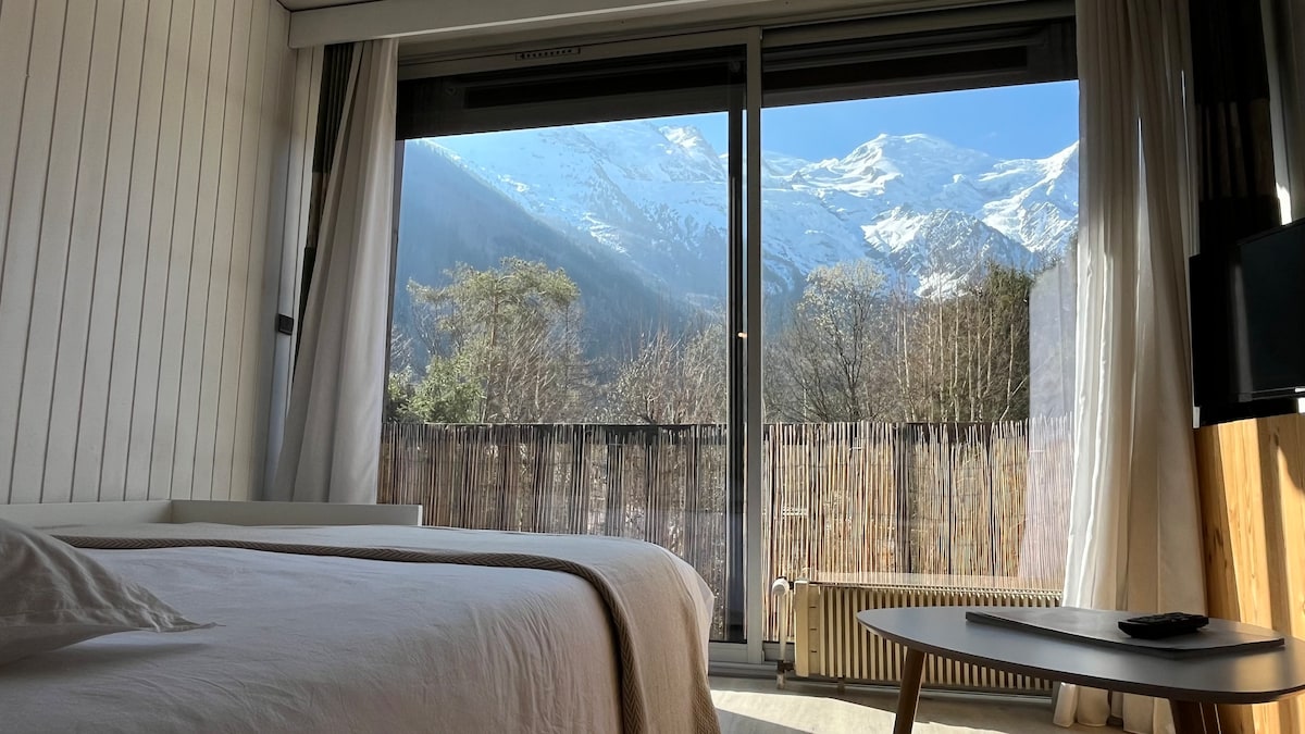 Profitez de ce havre de paix avec vue panoramique sur l’Aiguille du Midi et le Mont Blanc. Vous aurez la sensation d’être en pleine nature grâce au parc arboré et à la rivière situés au pied du studio. A seulement 6mn à pied de la rue piétonne, de la gare routière et de l’arrêt de train, à 10 mn du départ du téléphérique de l’Aiguille du Midi. vous pourrez laisser votre véhicule dans le parking privé et profiter des navettes gratuites desservant la vallée.