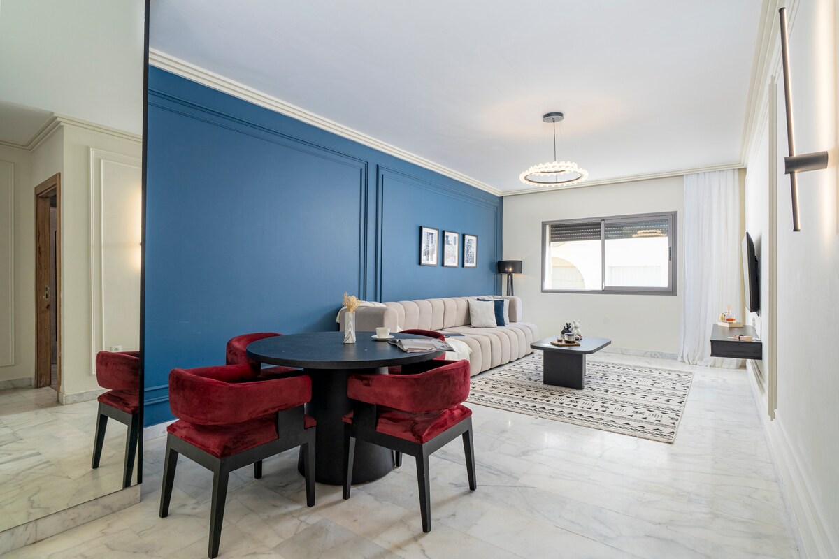 歡迎來到您的公寓,距離卡薩布蘭卡 Les Princesses 區中心的穆罕默德五世球場 (Stade Mohamed V) 只有幾步之遙。 這個空間的高端裝潢、設計師家具和奢華的觸感,與這個地方的寧靜、卓越的舒適度和時尚的氛圍相結合,承諾提供難忘的精緻和放鬆體驗。
