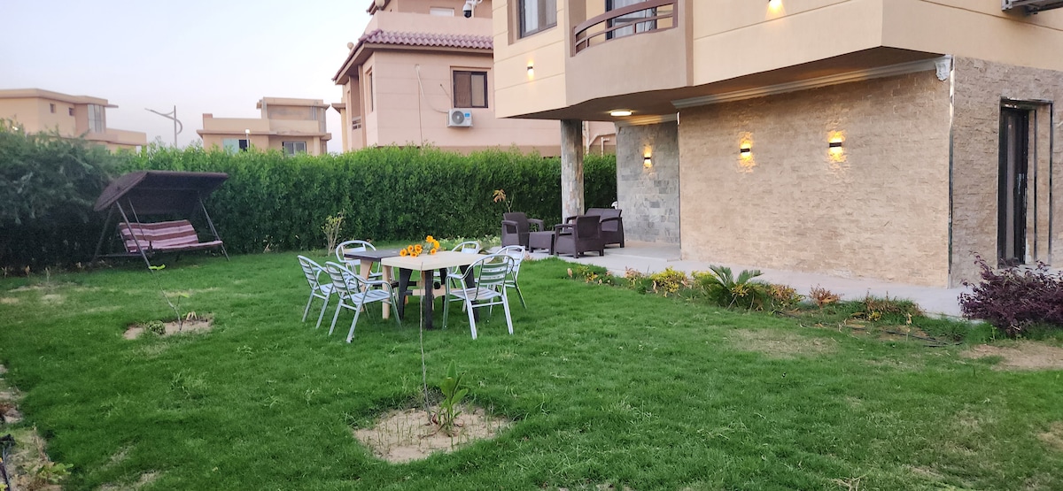 An amazing ground three bedrooms ensuite chalet with a nanny's room and bathroom located in the best community compound in Ain sokhna . All rooms are airconditioned/heated .The chalet has an open concept kitchen with built in appliances , cozy living area .Big cable Tv and WIFI access. Daily housekeeping ,24/7 maintenance ,toiletry and amenities supply , Out door barbeque area We make sure you enjoy a luxurious hassle free vacation .