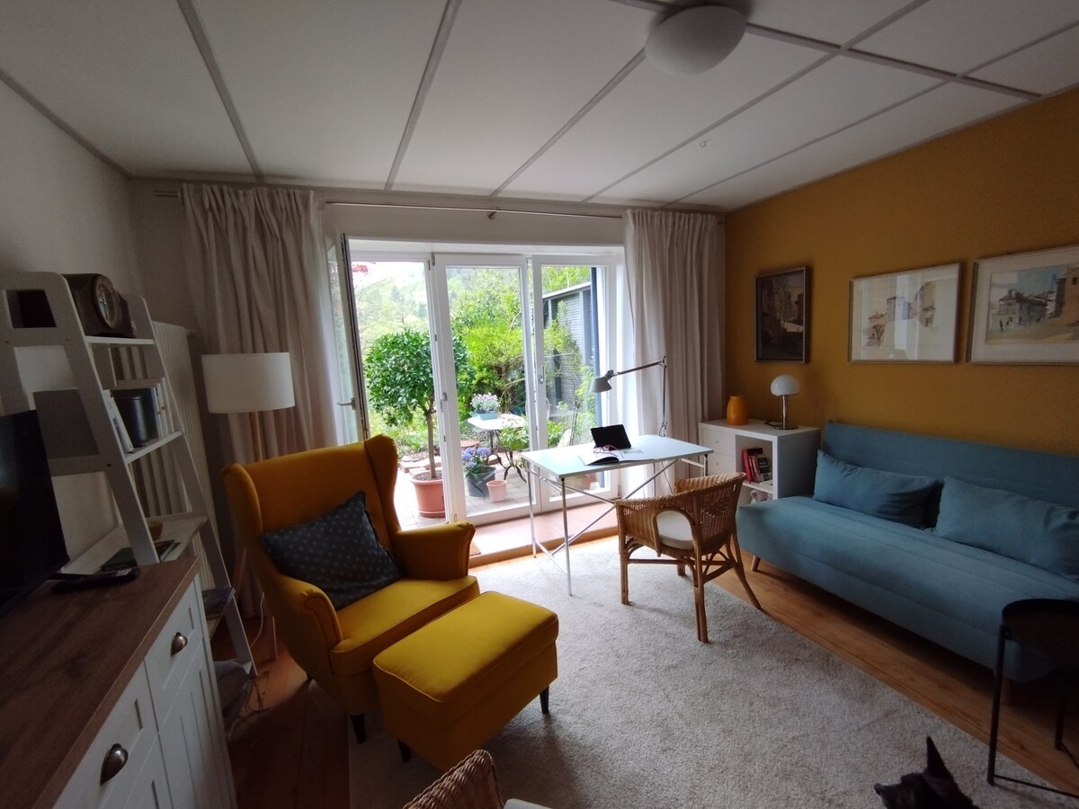 獨立入口、獨立小廚房/廁所/淋浴間,如圖所示。靠近大自然,步行5分鐘即可抵達市區、火車站和巴士。電加熱器加上額外的木爐。免費搭乘巴士和火車的房客卡。自行車租賃5歐元/天