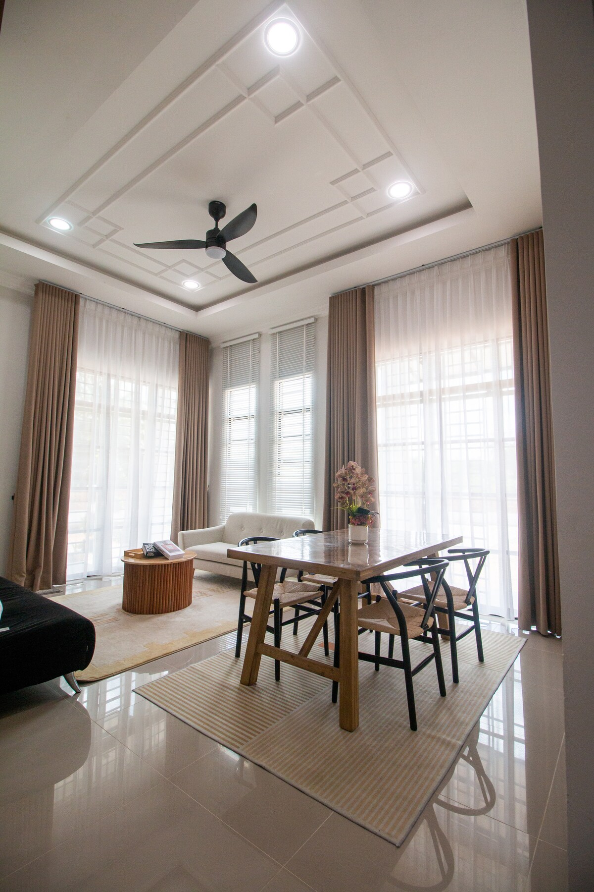 歡迎來到Calme Luna套房,有4間臥室和迷人的正面泳池。 我們的房源距離瓜拉丁加奴( Kuala Terengganu )市中心和景點不遠,為您的度假提供奢華和舒適的完美融合。 走進屋內,探索現代化的室內裝潢,擁有寬敞的室內和室外空間,專為放鬆和社交而設計。 開放式起居區非常適合家庭聚會,設有舒適的座位和用餐區,您可以一起享用美食。