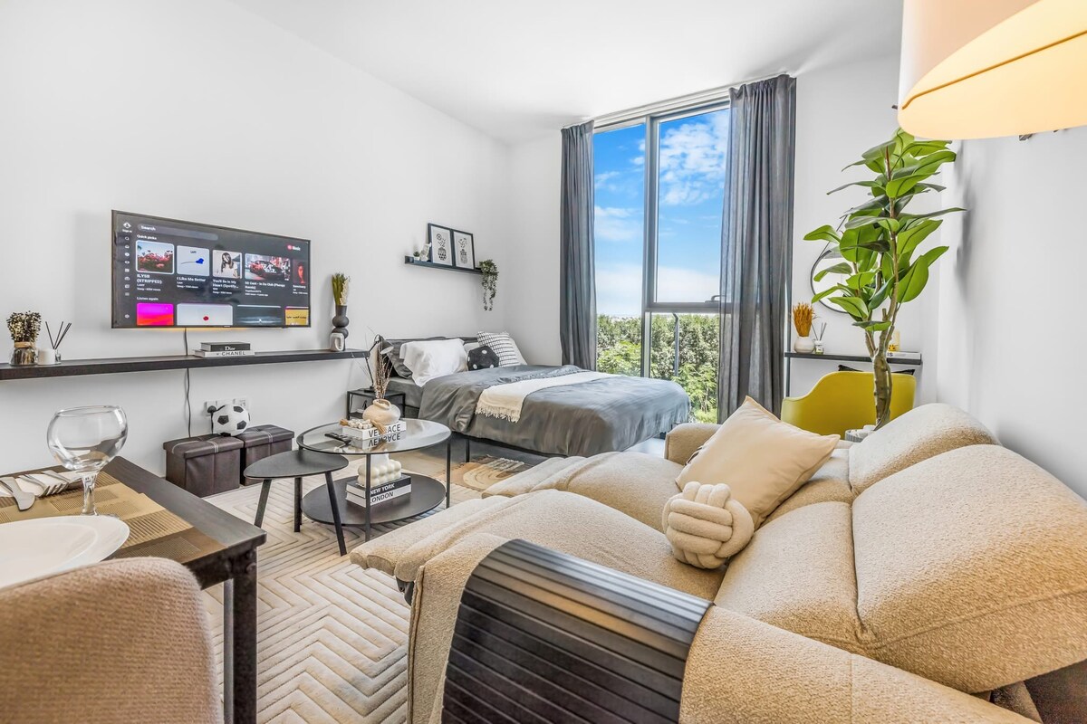 在這個時尚而舒適的單間公寓,享受了極棒的住宿體驗,這個單間公寓位於Al Mamsha by Alef,是沙迦最活躍和步行社區之一。 這個現代化的空間配有舒適的加大雙人床和沙發床,非常適合情侶、獨行旅客或小家庭。 ✨ 您會喜歡的內容: • 可使用免費泳池 • 高速光纖網路,可順暢串流和遠端工作 • 位置便利,靠近咖啡廳、超市和家庭景點