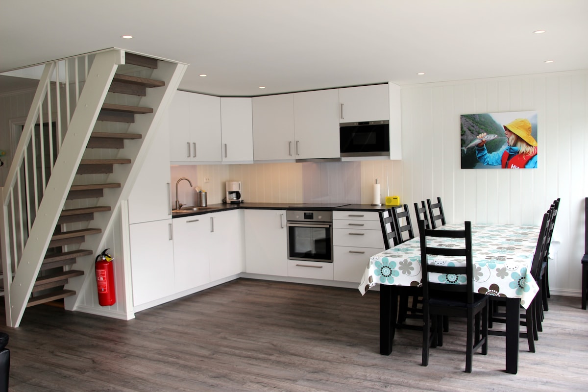 一間美妙的兩層公寓,從外面的私人陽臺可欣賞頻道( Karmsundet )的第一排景觀。 位於安靜的街區,步行即可抵達Haugesund市中心。 這是全新翻修的公寓,有平靜的綠色和原始的復古家具。 全新50英寸智慧電視(包括WiFi )、全新洗衣機和烘乾機。 設備精良,配有洗碗機、微波爐、烤麵包機和烘衣機,方便您使用。 你會在這裡找到你的寧靜。