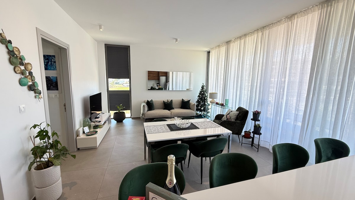 歡迎來到全新的2臥室豪華公寓,裝潢現代化。 位於黃金地區,距離My Mall、Park Gauguin、Lady 's Mile Beach、Waterpark & City of Dreams Resort Casino Hotel、Tennis Academy和limassol Port僅幾分鐘路程,靠近AlphaMega足球場 總面積 108 平方公尺 配備套房淋浴間的主臥室 第二間臥室有2張單人牀 共有2間浴室。 *整套公寓的水軟化系統 地板到天花板的窗戶。開放式起居空間 55寸智慧電視 非常大的陽臺。