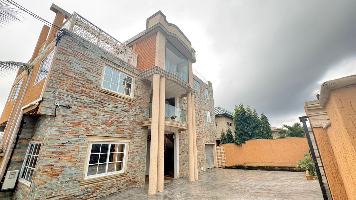 入住這個獨特且適合家庭入住的房源,讓我們留下美好的回憶。 該物業擁有寬敞的開放式地板大教堂高天花板橫樑現代牧場設計和屋頂露臺。 該物業配有高電柵欄,配有自動開門器。 每間臥室都有自己的獨立全套衛浴和客用洗手間。 從機場到別墅的所有道路(車程35分鐘) ,位於Aburi植物園,非常靠近國家消防局。
