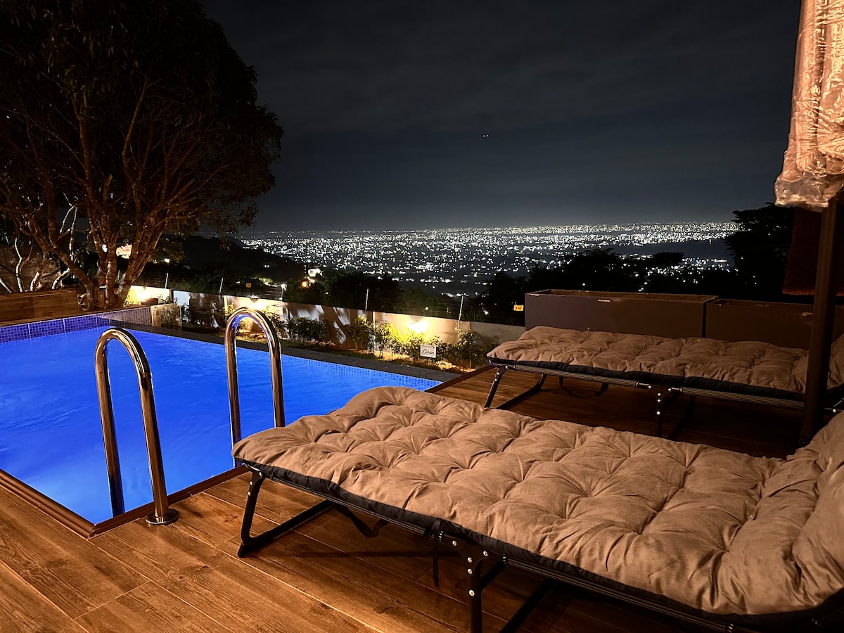 我們位於阿布里的豪華「A」型小木屋位於阿克拉郊區,距離機場僅25公里。我們獨特的房源風格獨到;坐落在山上,俯瞰城市。您可以在床上欣賞夜晚的壯麗景色,以及綠色山脈和山谷的驚人日景。在夜間從您自己的私人無邊際泳池眺望城市,是一種愉快的體驗,與我們的浪漫氛圍相得益彰。享受超過15個遊戲或徒步旅行的驚人度假體驗。