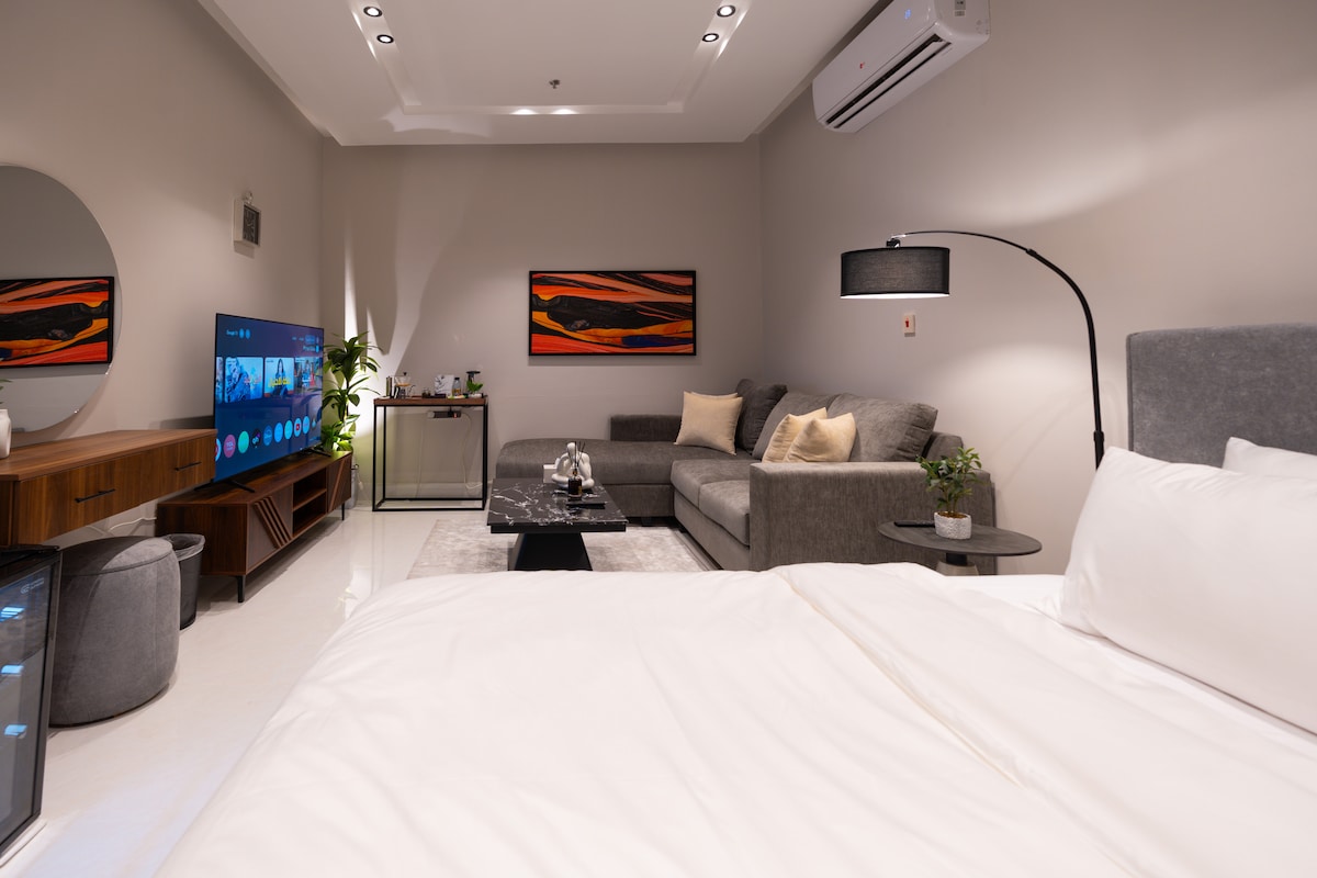 استمتع بتجربة فريدة من نوعها في غرفة نوم خاصة توفر الاسترخاء والراحة. تتضمن الشقة سريراً ومنطقة معيشة حيث يمكنك الاستمتاع بالمشاهدة على شاشة ذكية مقاس 55بوصة. هناك أيضًا مطبخ وقهوة لتلبية جميع احتياجاتك. غرفة نوم فندقيه دخول ذكي بتصميم مريح 5 دقائق مشي الى الاحساء مول 5 دقائق مشي لحديقة الملك عبدالله 10 دقايق بسيارة لجامعة الملك فيصل 10 دقايق بسيارة لكلية الادب 10 دقايق بسيارة لمطار الاحساء الدولي 15 دقايق بسيارة لمحطة القطار والكوفيهات قريبة من مطاعم استديو بتصميم مريح تشطيب فاخر