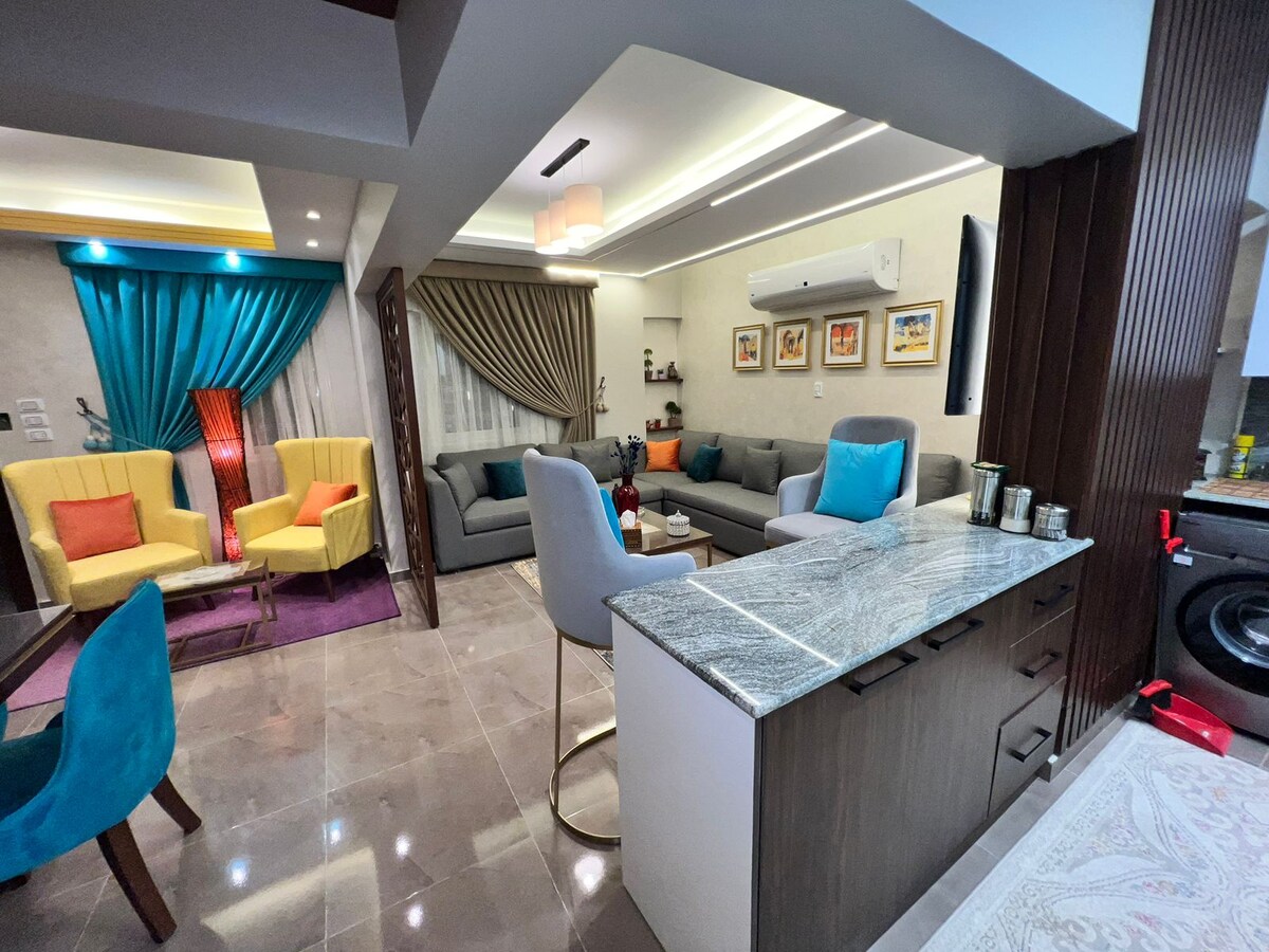 Experience comfort and convenience in this modern studio located in Nasr City. Perfectly situated near major malls, restaurants, and cafes, this cozy retreat is just a 20-minute drive to downtown Cairo and 25 minutes to Cairo International Airport. Ideal for both leisure and business travelers.
