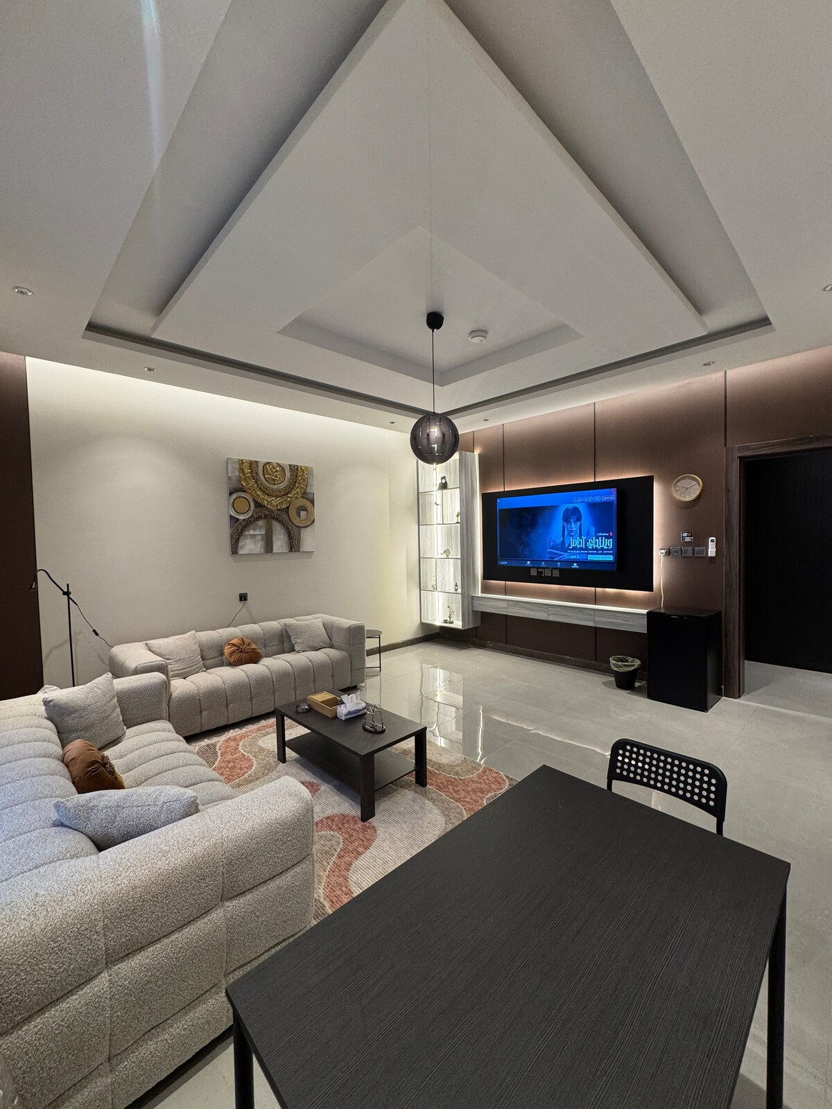位於高級社區的整套單間公寓 5G 網路 65 吋大型智慧螢幕 完全私密的自助入住/退房 靠近城市的所有景點 附近最著名的景點(開車 5 分鐘): 兩聖清真寺 壕溝和七座清真寺 蘇丹娜路和環形路 泰巴伊斯蘭大學 法赫德國王醫院 法基赫醫院 瓦迪阿基克步道 財政部、天課管理局和食品藥品管理局分部(幾步之遙) 距離聖地 11 分鐘,距離烏胡德山 14 分鐘,距離庫巴清真寺 16 分鐘 可提供私人車輛和司機。 機場接送服務。