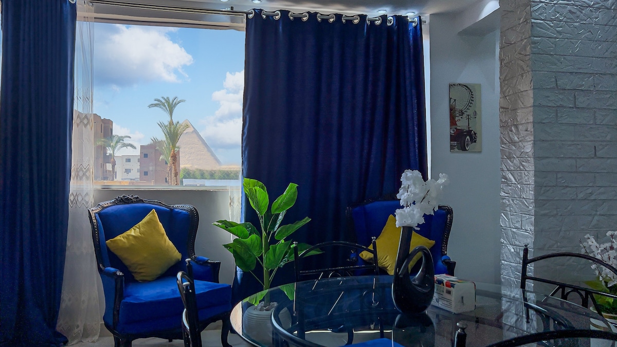 Thank you for visiting Pyramids View Apartament. Our apartment is a special place to unwind and enjoy the magnificent and magical view of the Giza Pyramids. The Pyramids are only a 5-minute walk away from our apartment. Please inquire about our excursions and private tours. We make them especially for you. We can assist you in whatever you require. We do our best to make your experiment so perfect that your happiness and safety are our top priorities.