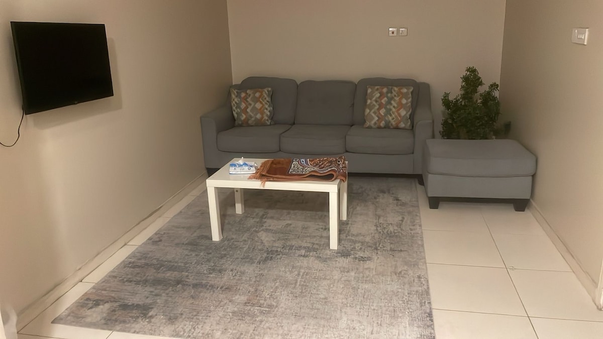 時尚且整合的公寓,提供舒適的住宿和完全的隱私,非常適合尋找安靜和實用的地方的房客,無論是短期還是長期住宿。 公寓的特色: • 舒適的臥室,配有雙人床 • 家庭獨立休息室 • 設備齊全的廚房 • 獨立衛浴 • 免費高速網路 • 自助入住,享有更多彈性和隱私 • 配有監視錄影器的私人停車位 位置: 公寓位於Al Salam – Mabr ,靠近: • 各種咖啡廳和餐廳 • 民俗村 • Almousa 醫學院
