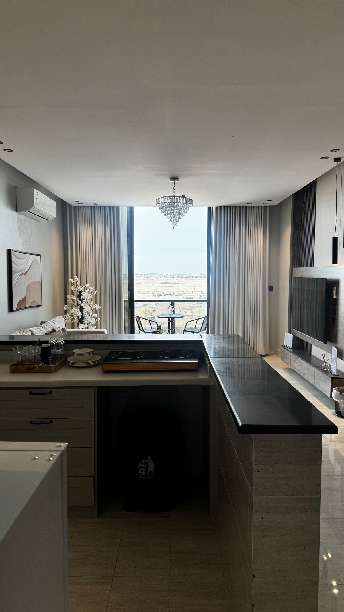 Enjoy a luxurious tropical Bali-inspired stay 🌿 Designed with warm wooden elements and lush greenery to create a relaxing atmosphere. 🛏 King-size bedroom 🛋 Spacious living room with sofa and open kitchen ☕ Coffee corner with complimentary hospitality 📺 Smart TV 📶 High-speed WiFi 🔐 Self check-in for full privacy 📍 Located in Al Rakah Al Shamaleya, close to the waterfront and amenities. Perfect for couples, small families, or guests seeking a premium tropical-style stay.