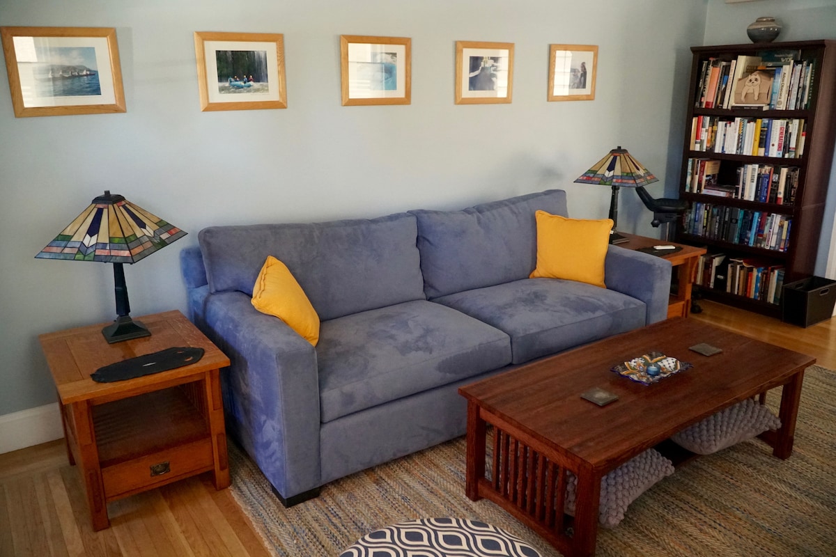 享受陽光明媚、家具齊全的1BR/1BA房源,配有獨立入口、全尺寸雙人床、淋浴間和浴缸、設備齊全的廚房(配有洗碗機)、餐廳+客廳(配有壁爐)、拉出式沙發、Roku電視、Wi-Fi和單位內洗衣機/烘乾機。 位於安全、步行即可抵達的Alameda街區,靠近咖啡廳、碼頭、商店、公園、前往舊金山的渡輪和前往奧克蘭機場的巴士。 乾淨、舒適和整潔—您的完美家。